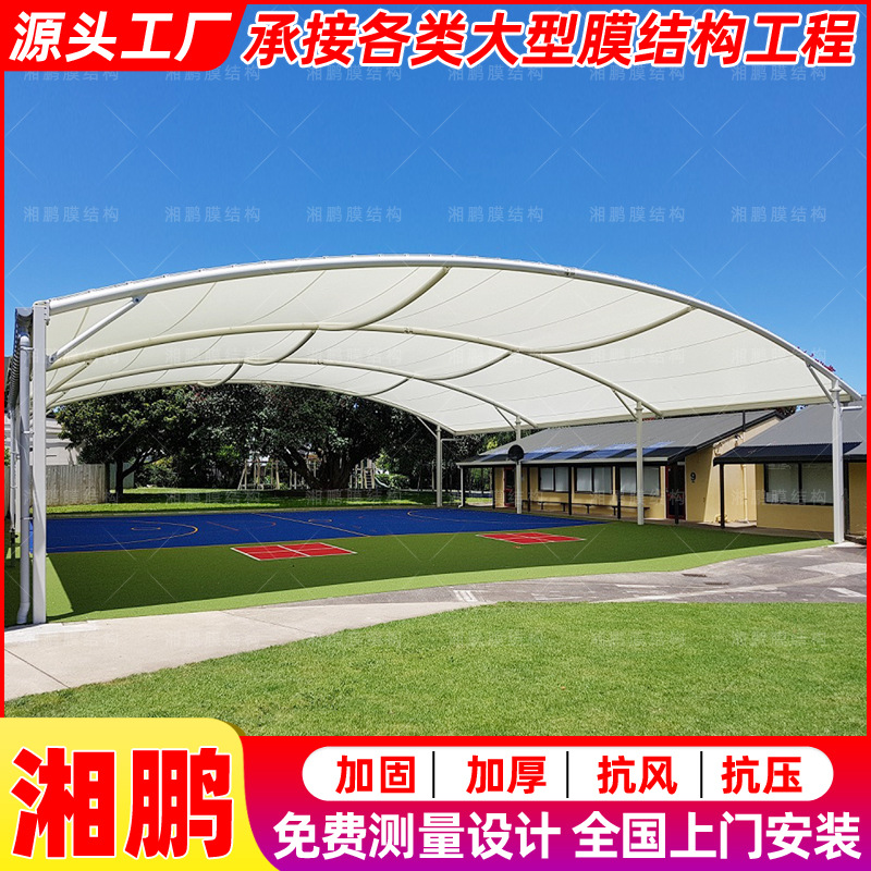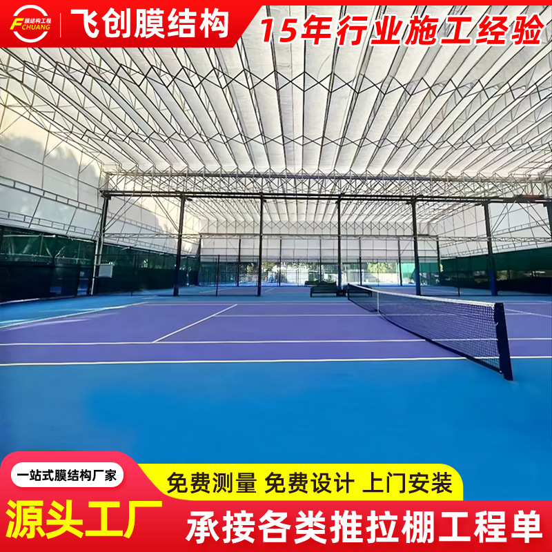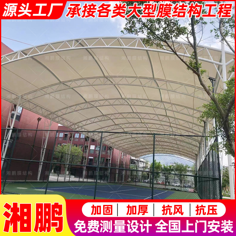 大型鋼架膜構造球場棚屋外バスケットコート張拉膜天井鋼架膜構造テニスコート雨蓬