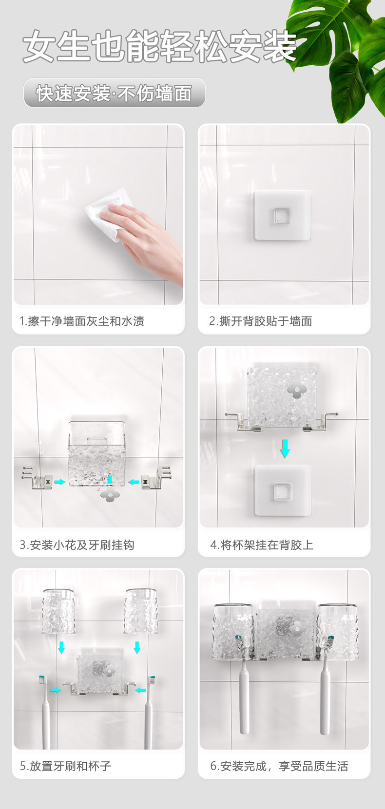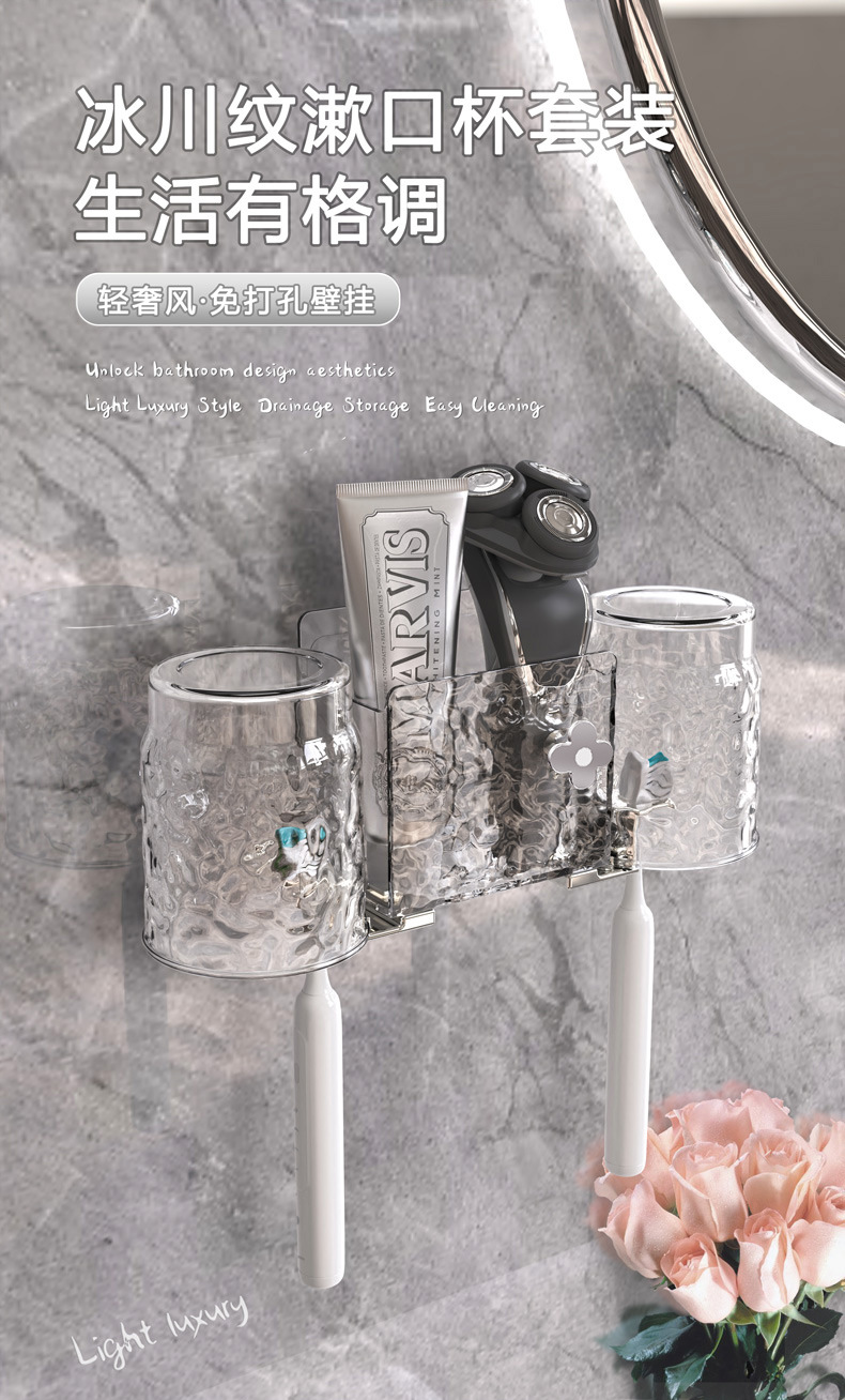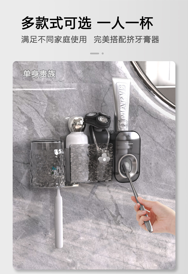 牙刷置物架卫生间家用免打孔壁挂式漱口杯子浴室牙刷收纳挂架套装