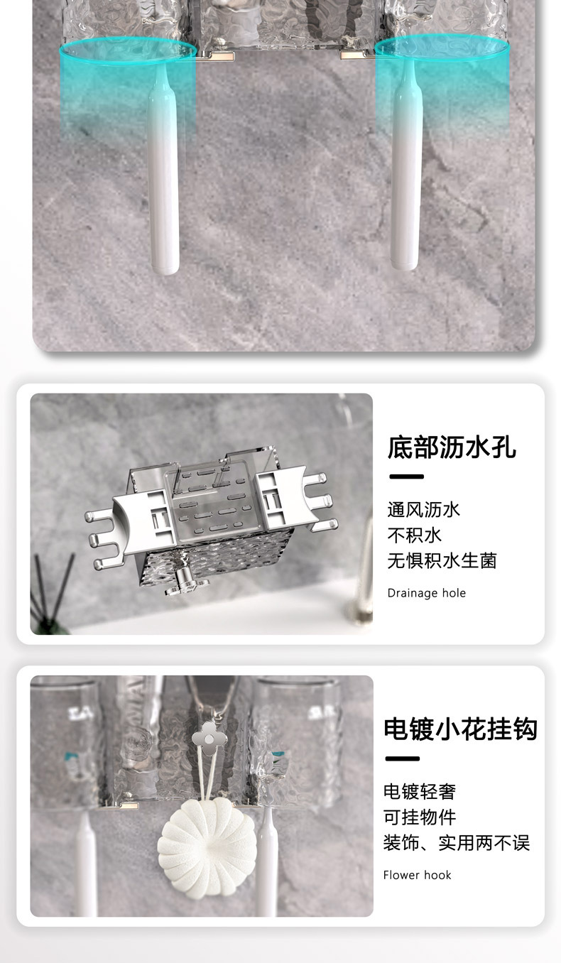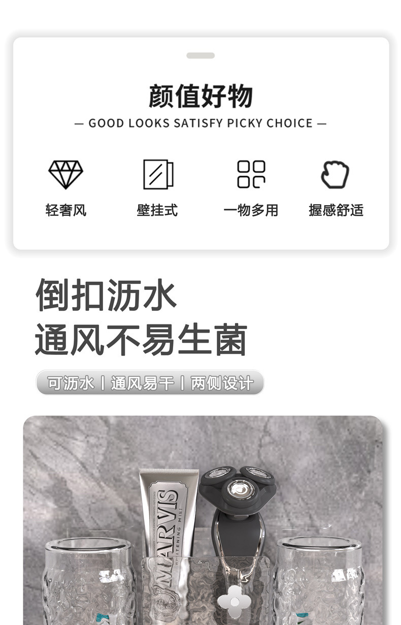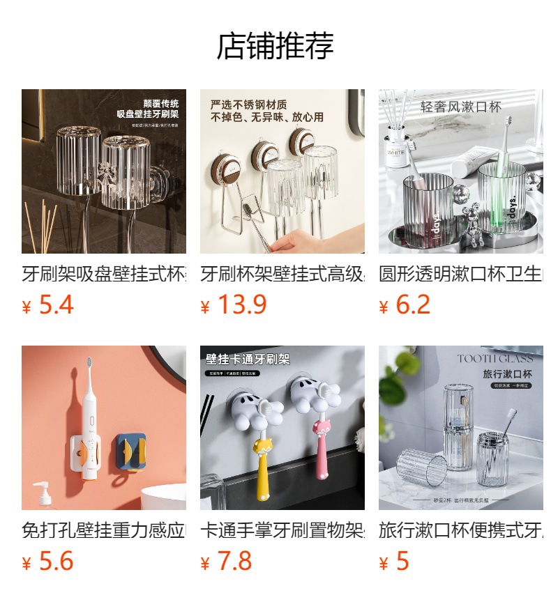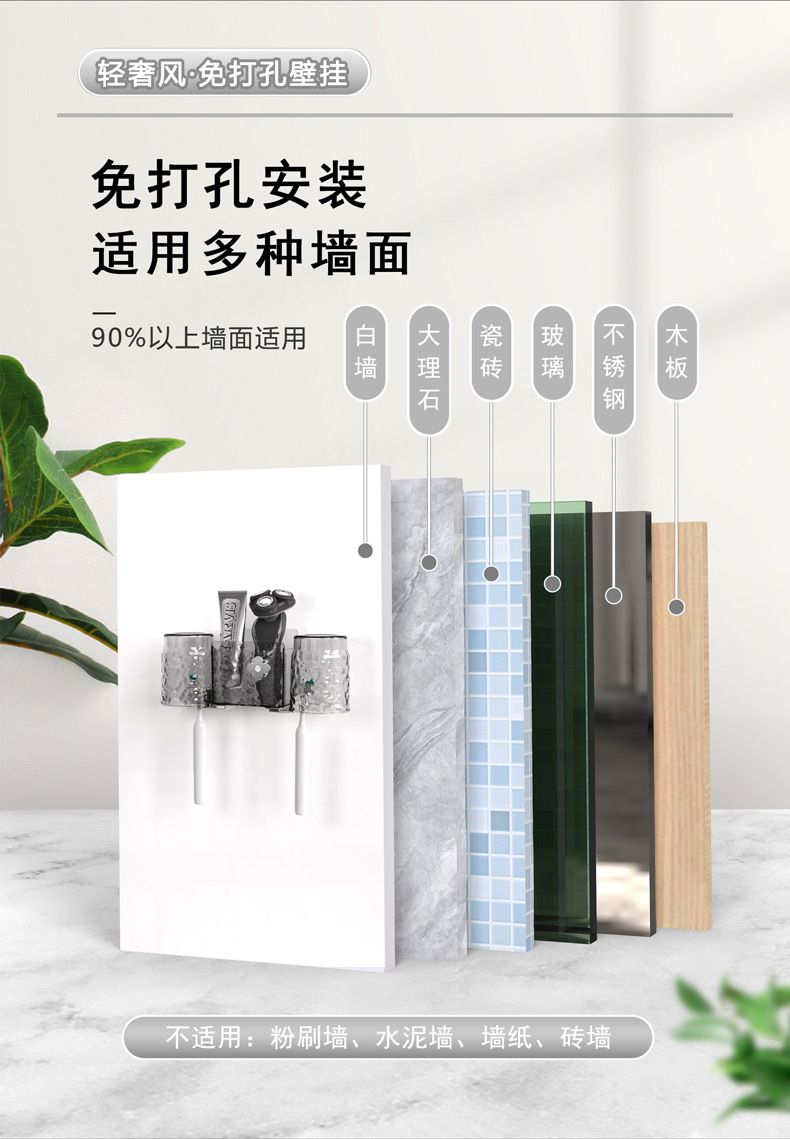 牙刷置物架卫生间家用免打孔壁挂式漱口杯子浴室牙刷收纳挂架套装