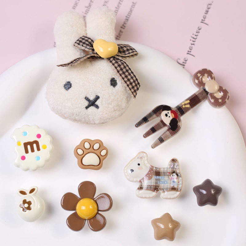 新款可爱棕色系洞洞鞋diy配件 女生休闲鞋洞洞鞋鞋花配饰厂家批发