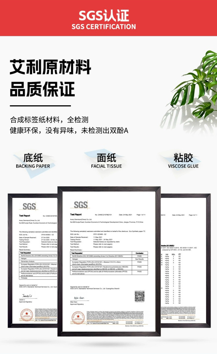 炭素テープラベル合成紙ラベル紙不乾性ラベル防水引き裂かれたpp合成紙ラベル