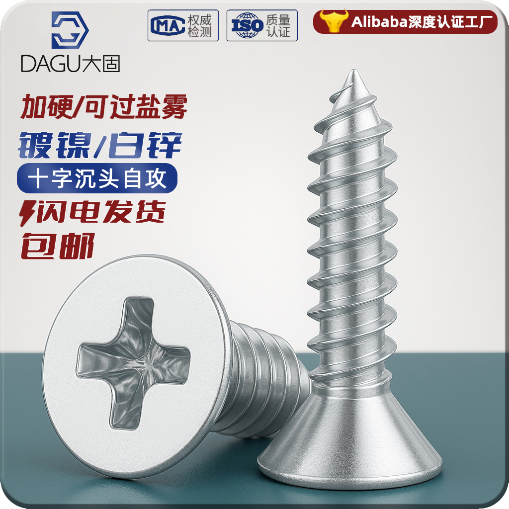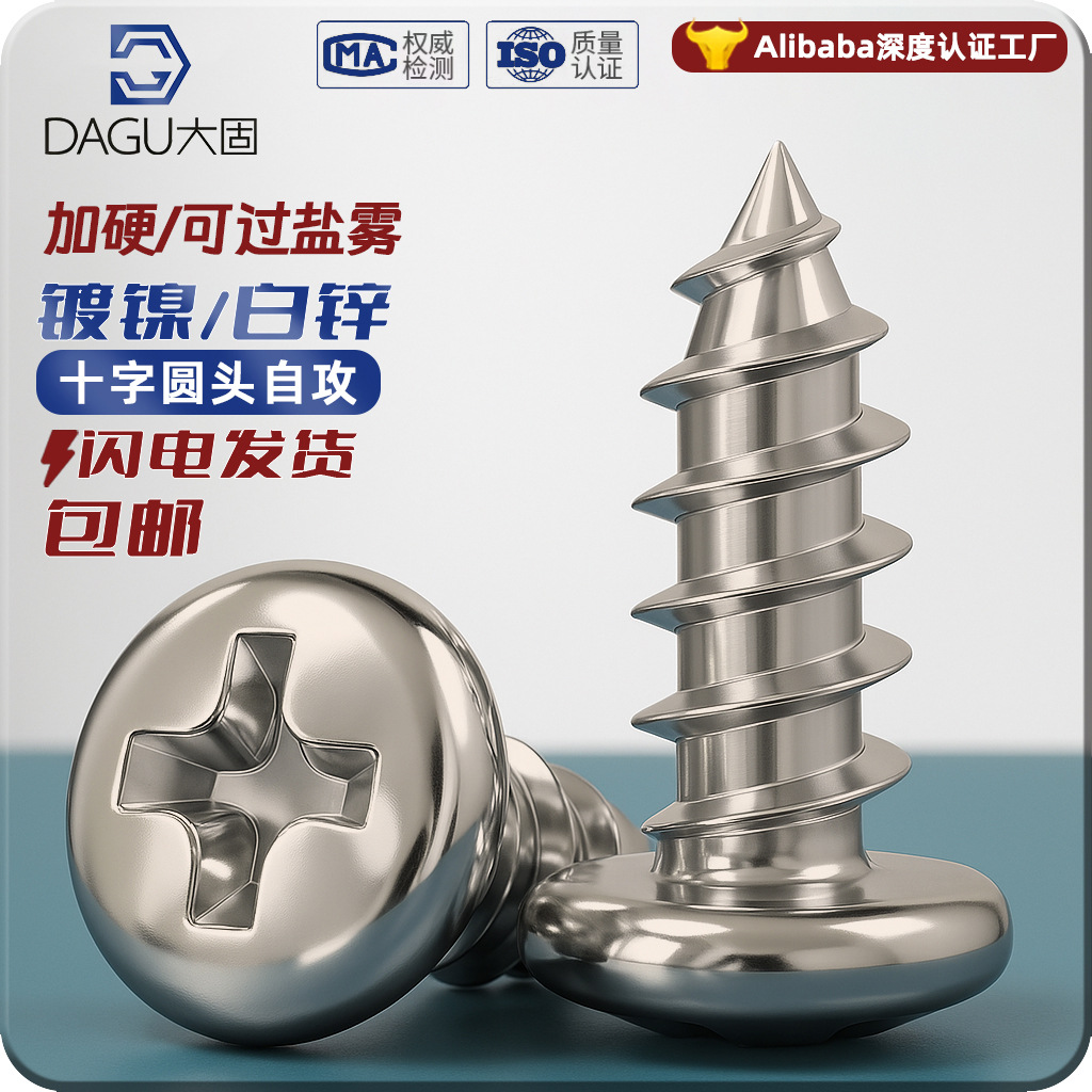 KA深頭セルフタッピング高強度硬化白亜鉛メッキニッケルメッキ平頭十字セルフタッピングネジ金物
