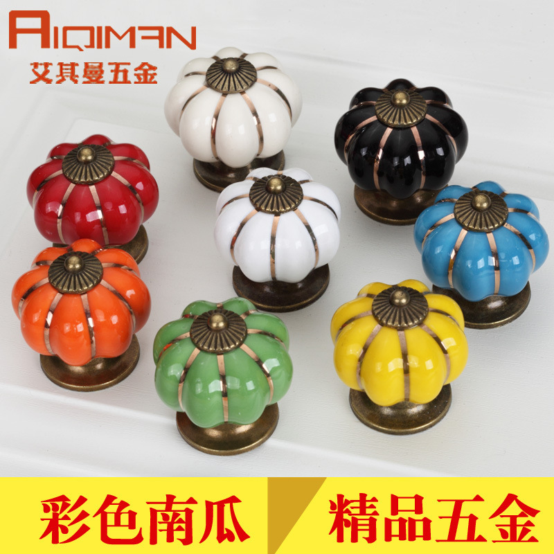 彩色陶瓷拉手 七彩南瓜卡通拉手田园儿童拉手橱柜把手抽屉拉手