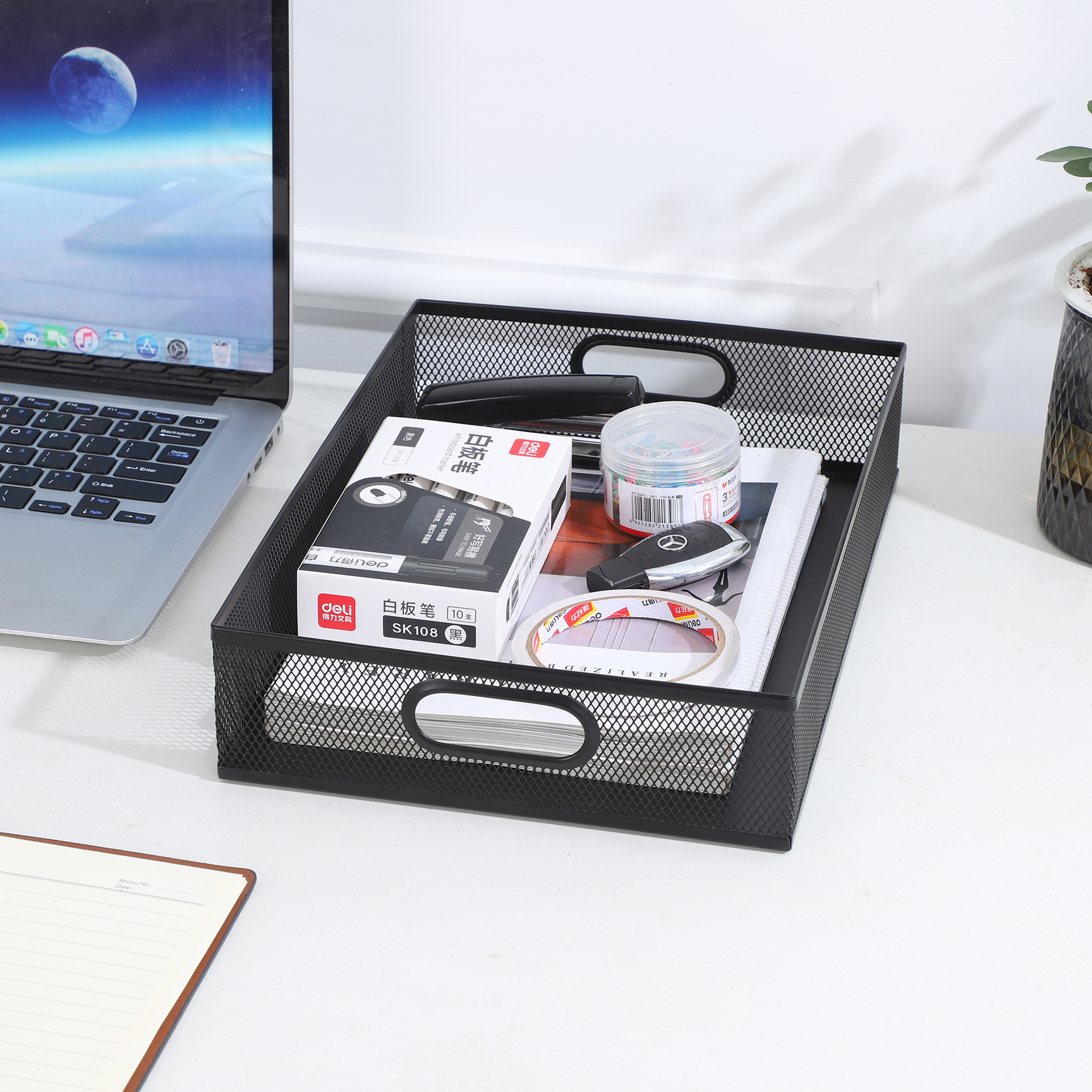 金属製の正方形のメッシュファイルバー大容量単層データ収納バスケットデスクトップオフィス整理収納ボックス卸売