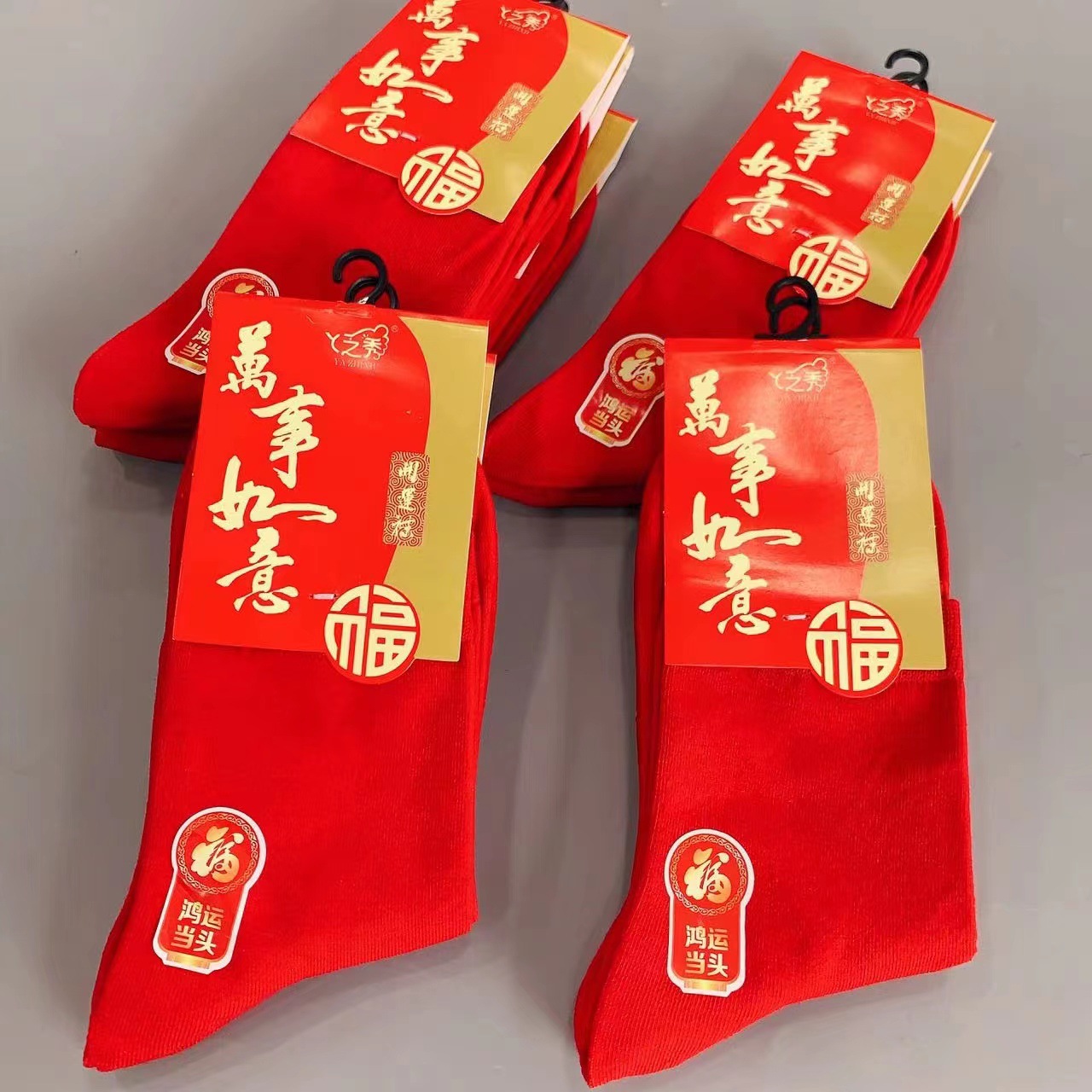 靴下日韓系秋冬男女大紅靴下結婚祝い本命年男女大紅綿靴下現物卸売り