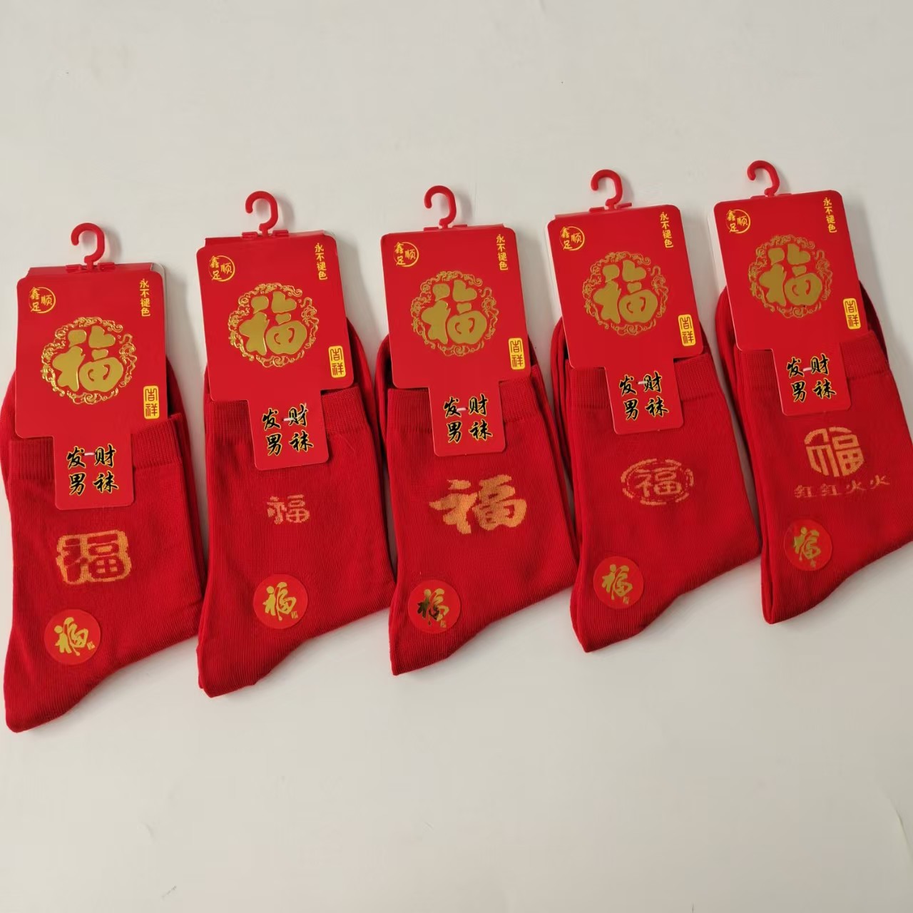 中国の赤い男女の本命年の靴下の中で筒の福の字の赤い綿の靴下のカップルの祝い事の大きい赤い靴下は色が落ちません。