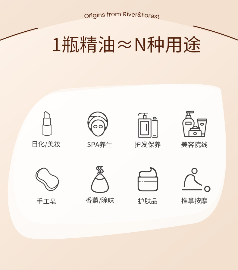 天然植物精油单方精油檀香精油芳疗身体按摩油高浓度玫瑰精油定制