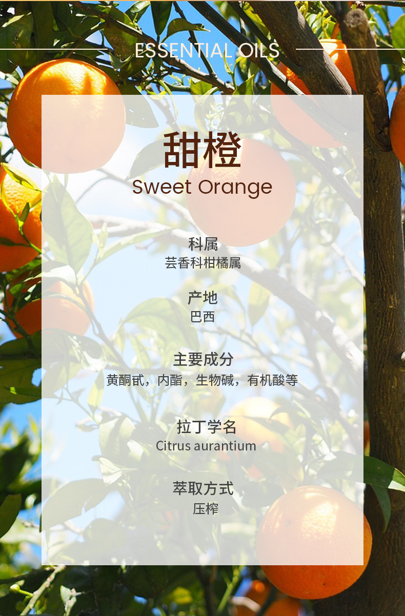 冷圧抽出アロマセラピー級甜橙精油天然香橙油植物香薫スキンケアマッサージ純精油メーカー