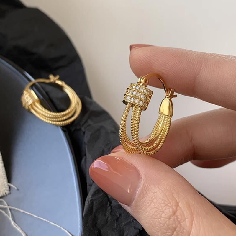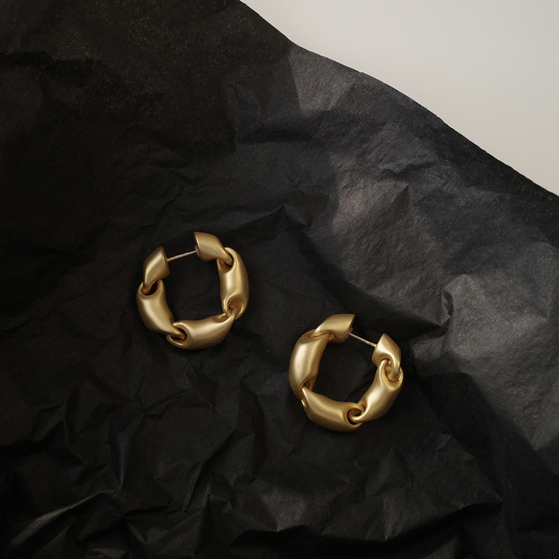 韓国の二重麻花リングイヤリング、新作人気、軽やかな高級感、ヴィンテージ風イヤリング