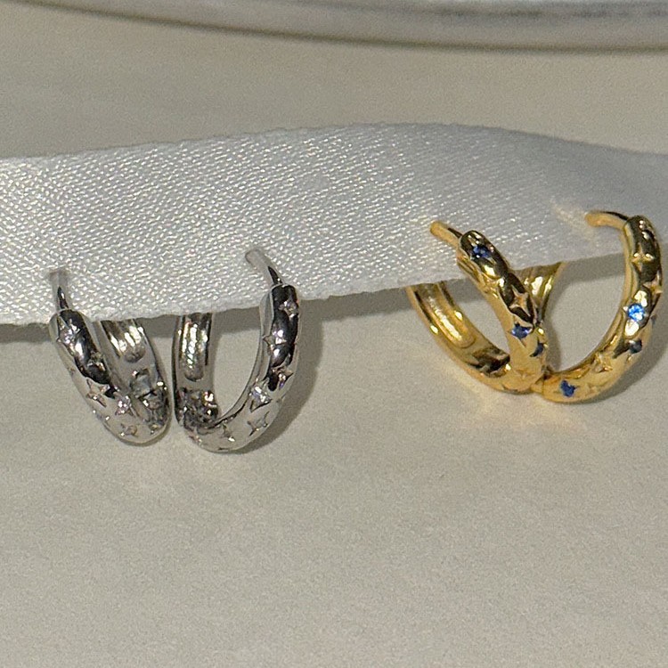 韓国の質感の透かし彫りの八芒星金沙金耳輪のイヤリングのシンプルな気質の耳飾り2025新型