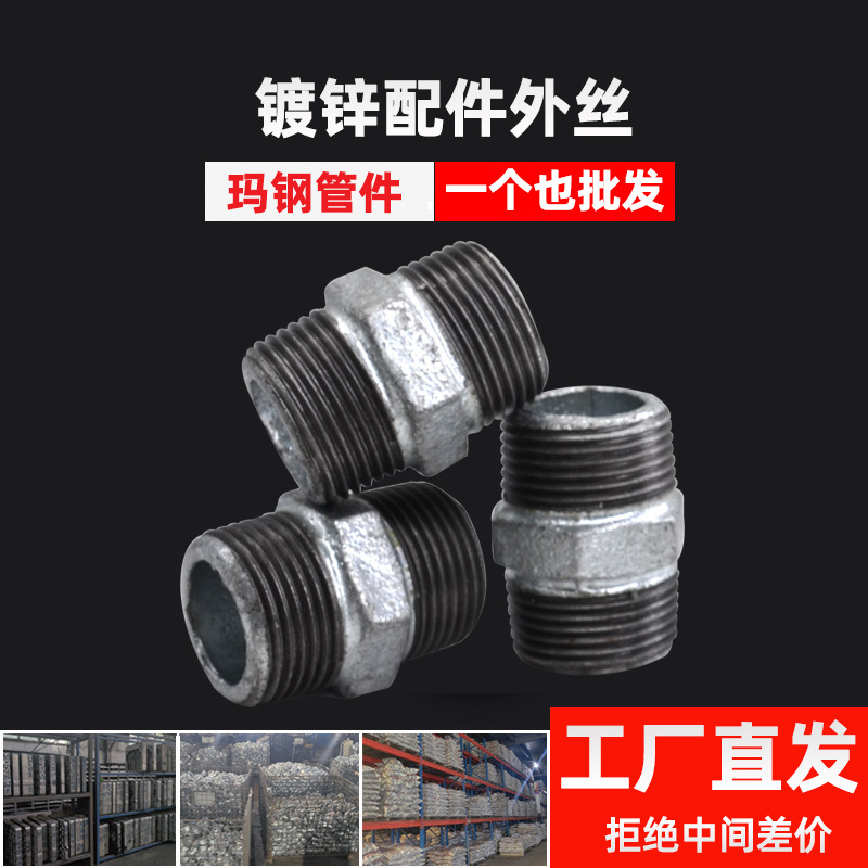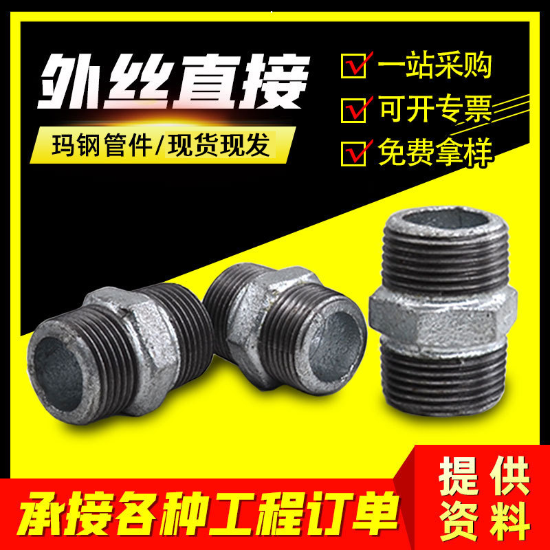 6分消防管道配件镀锌玛钢管件4分双头螺纹外丝直通六角对丝接头