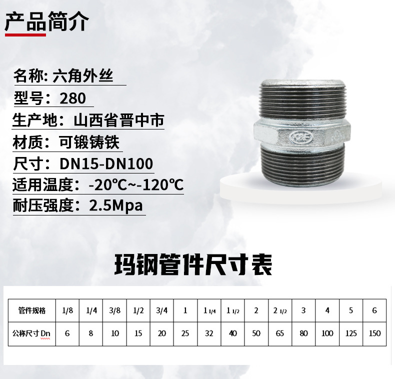 山西マ鋼熱間亜鉛メッキ内ネジ接続六角管外ネジ外歯付属品給水管継手