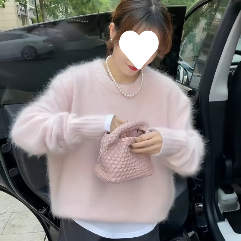 ピンクの馬海毛はだらだらしていて、セーターの女性は冬の高級感があります。