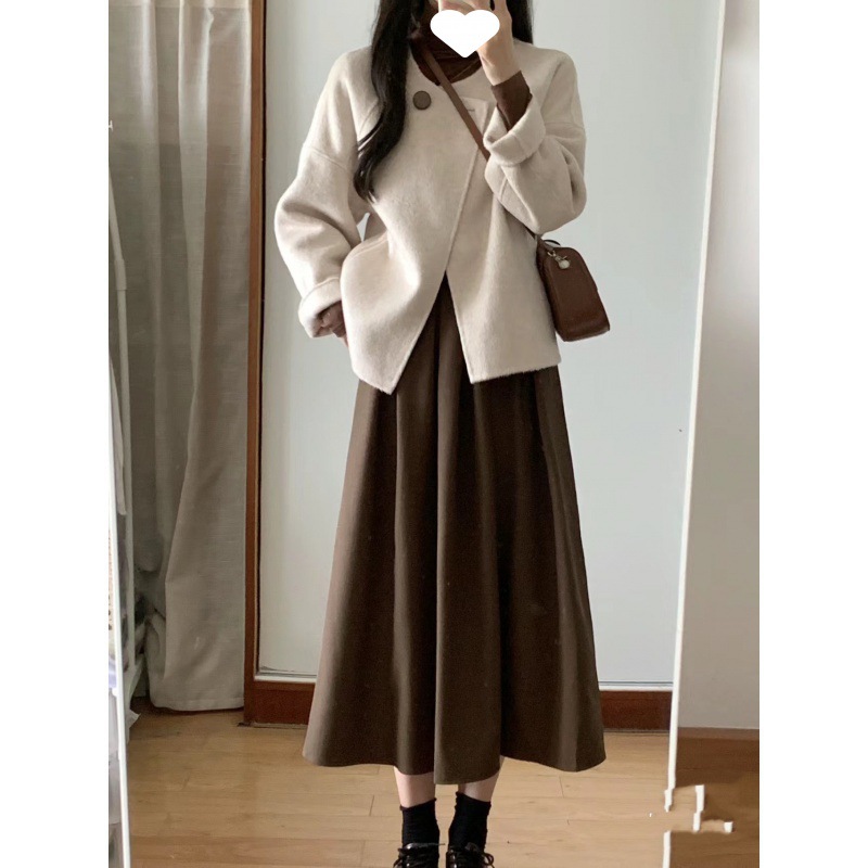 初冬のセットは2025の新型の子羊の毛の短いコートの半身のスカートの2つのセットの小さい香風のファッションのスーツを着ます。