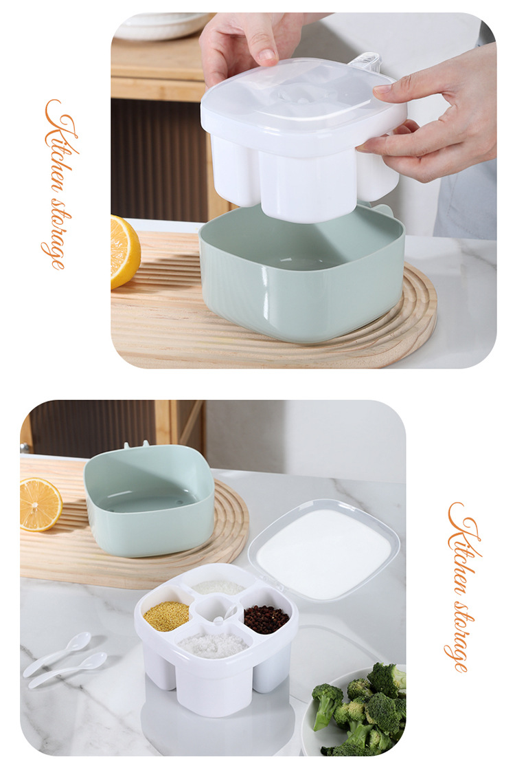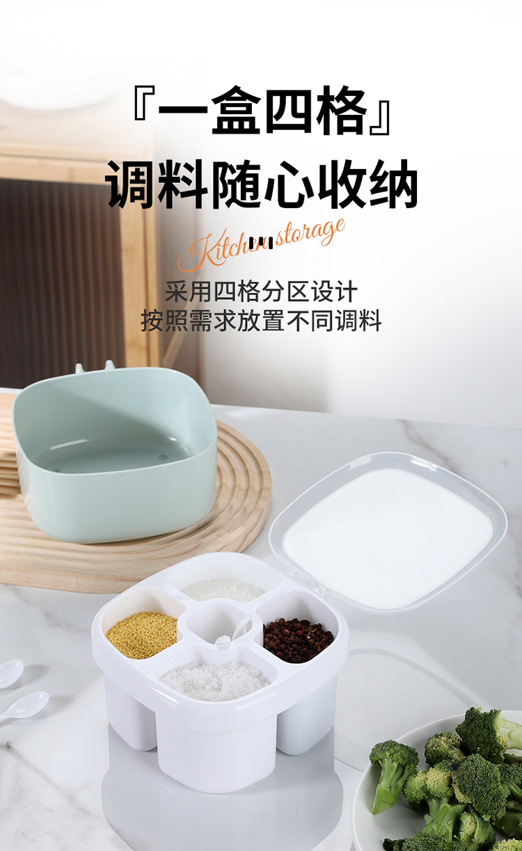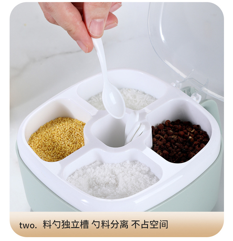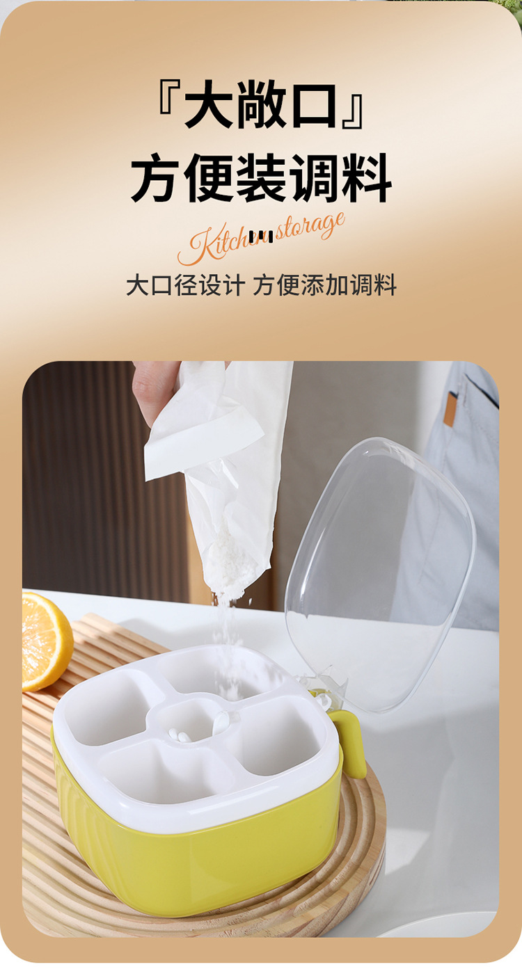 卸売り家庭用キッチン調味料箱多格キッチン四格一体調味料箱スプーン付き調味料箱塩缶収納セット