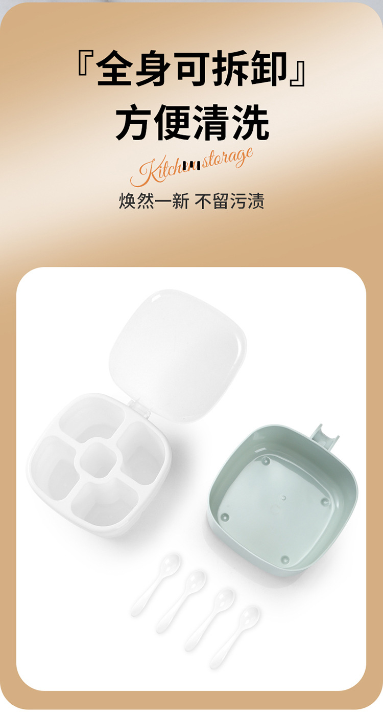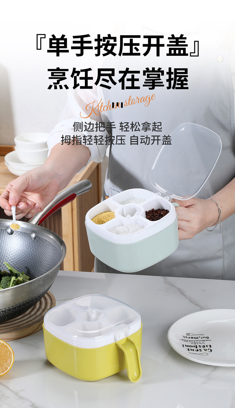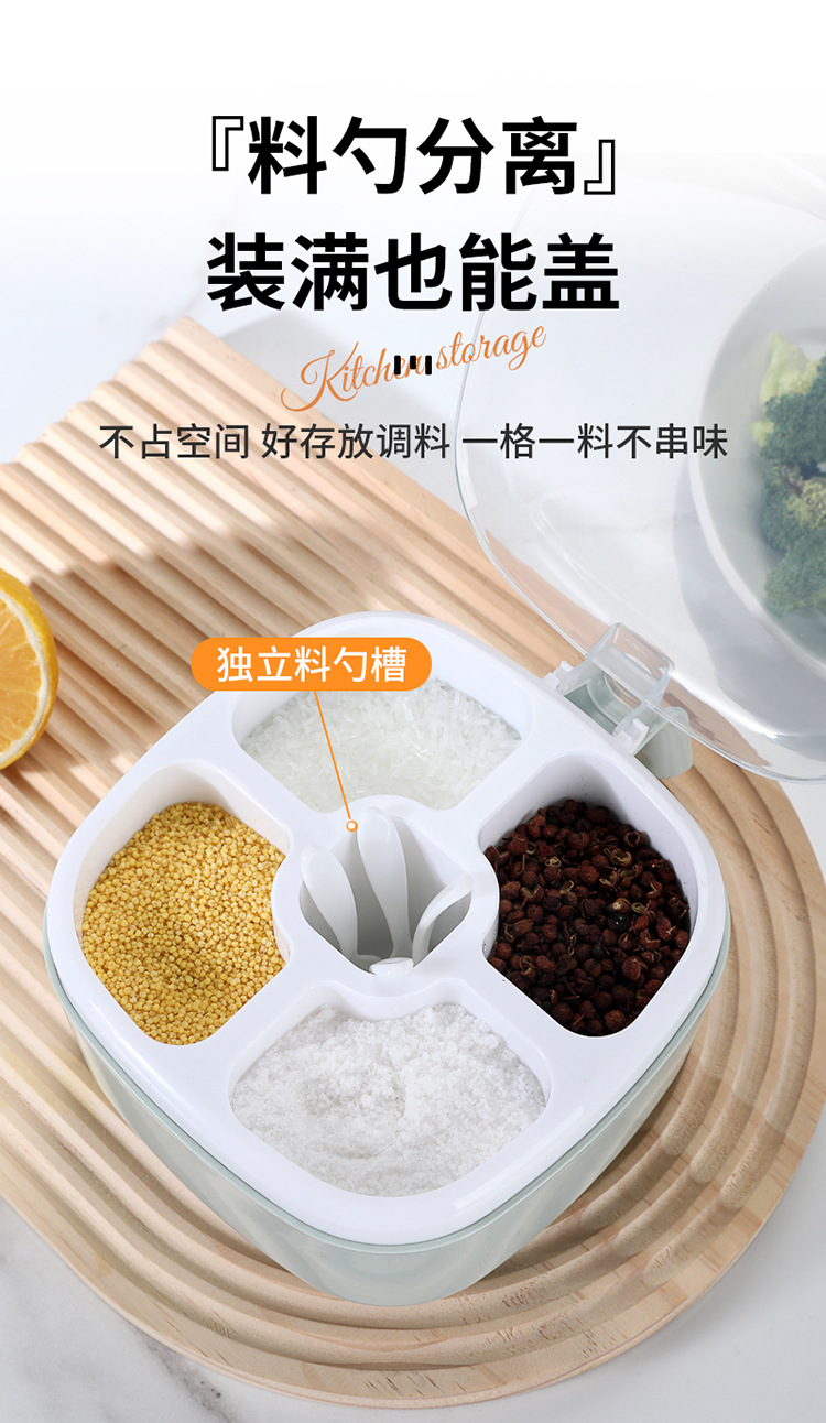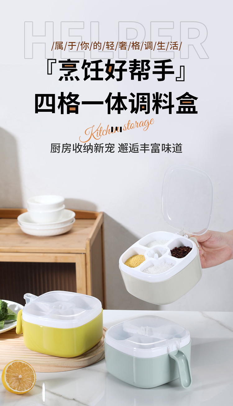 卸売り家庭用キッチン調味料箱多格キッチン四格一体調味料箱スプーン付き調味料箱塩缶収納セット