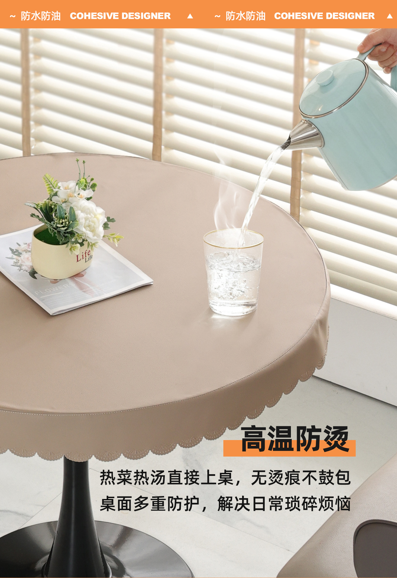 大圆桌桌布防水防油防烫免洗圆形餐桌台布轻奢高级感家用酒店餐厅