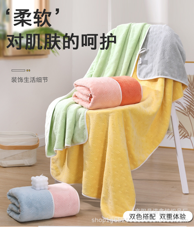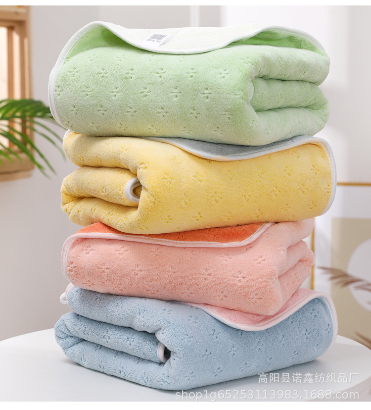 新しいサンゴのベルベットのバスタオルの両面複合は柔らかい吸水速乾を厚くして、毛を落とさない家庭用入浴バスタオル卸売りをしている
