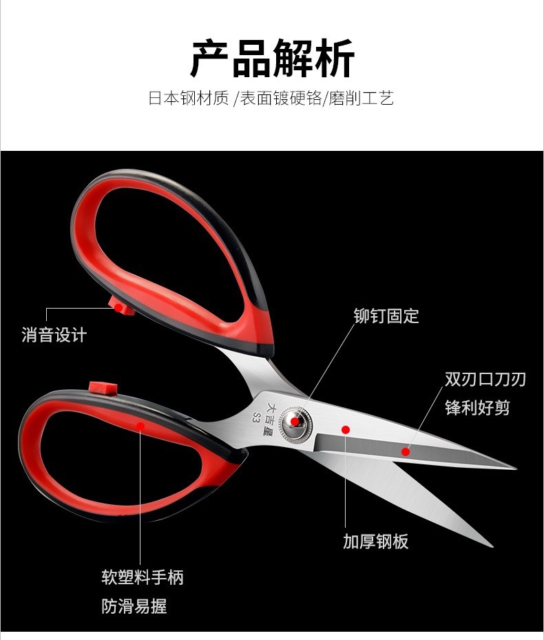 大吉星家庭用ステンレスハサミ工業服装皮革ハサミ裁縫キッチンステンレスハサミS3手作業