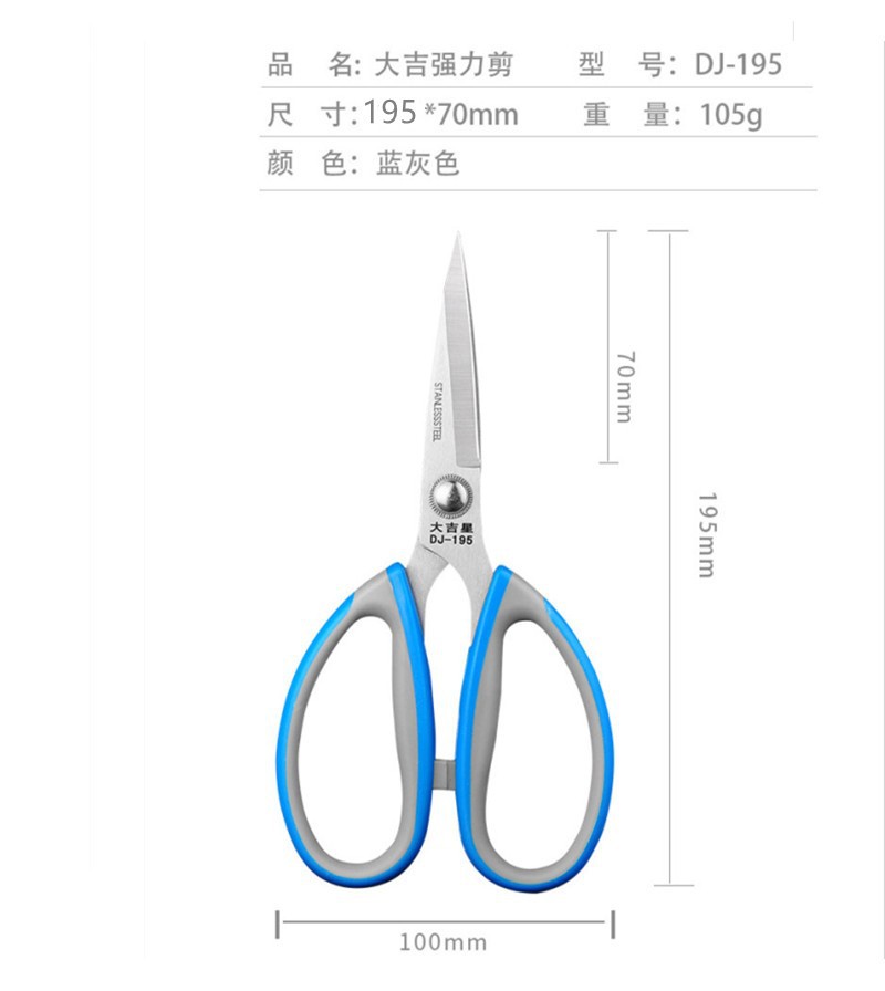 大吉星家庭用ステンレスはさみ工業服装皮革裁断裁縫キッチンステンレス195手作業