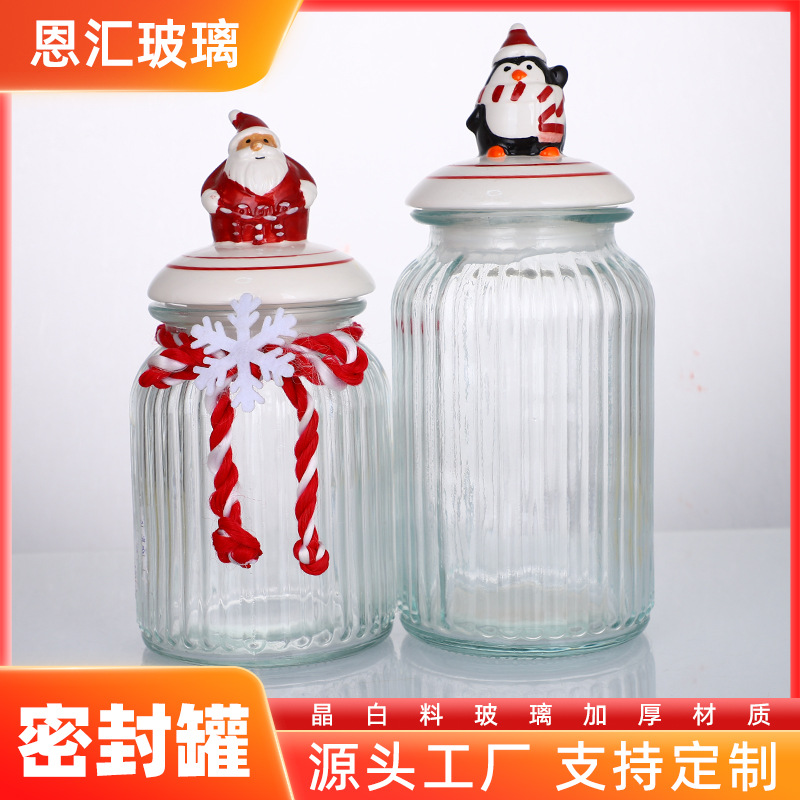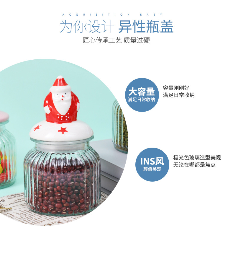 摩登主妇圣诞糖果罐礼物食品级玻璃瓶储物糖罐子密封罐零食收纳盒