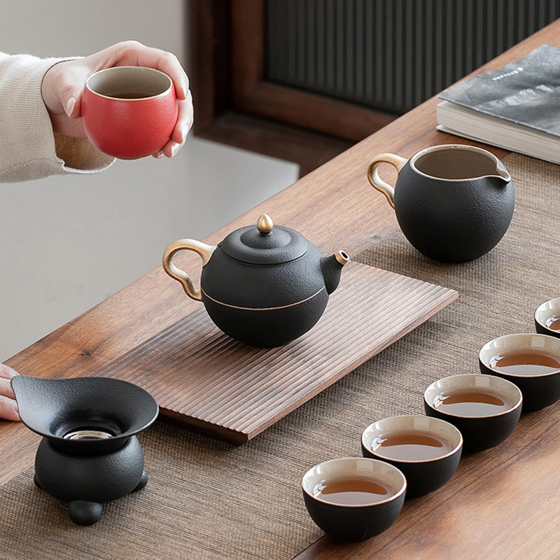 工夫茶器セット家庭用和風粗陶オフィスティーポットカップ陶磁器高級プレゼントケース