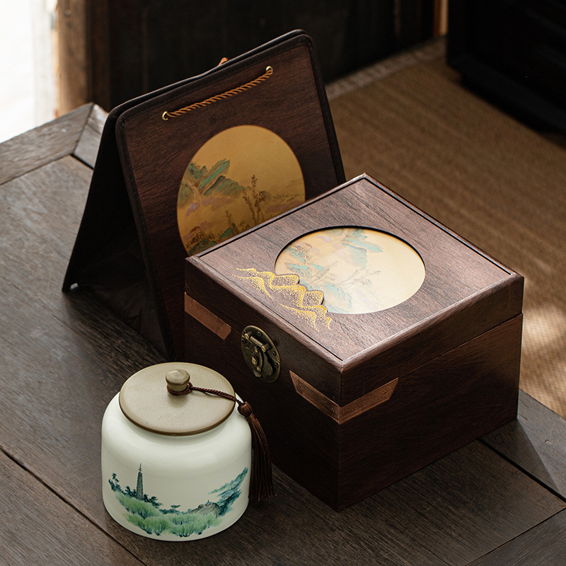 茶缶 ヴィンテージ風 陶器製 茶葉包装 ギフトボックス 空箱 シングル缶 大容量 半斤用 汎用
