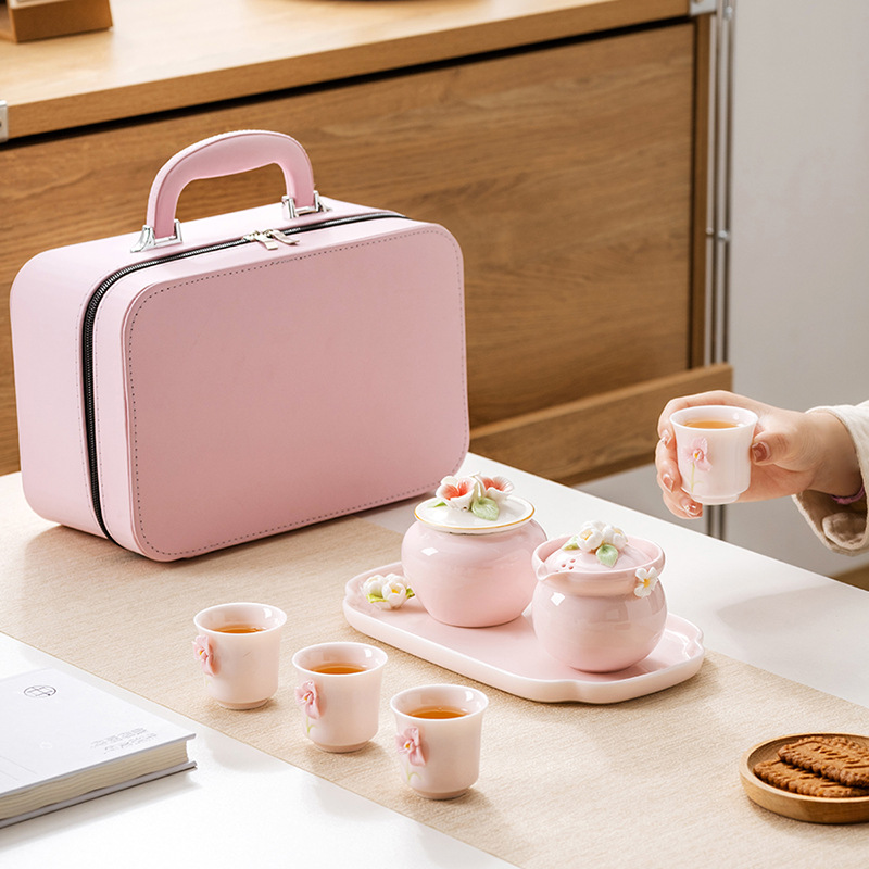 工夫茶器ティーカップセット屋外ポータブル旅行茶器ティーポットから誕生日プレゼントをプレゼントします