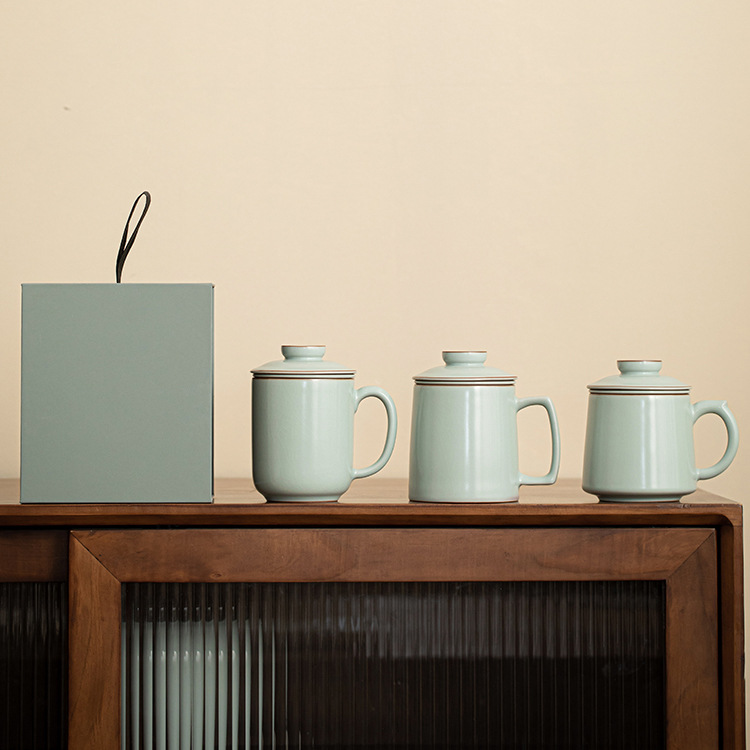 汝窯茶杯事務室陶磁器濾過茶水分離家庭用開片可養泡茶杯礼箱お土産