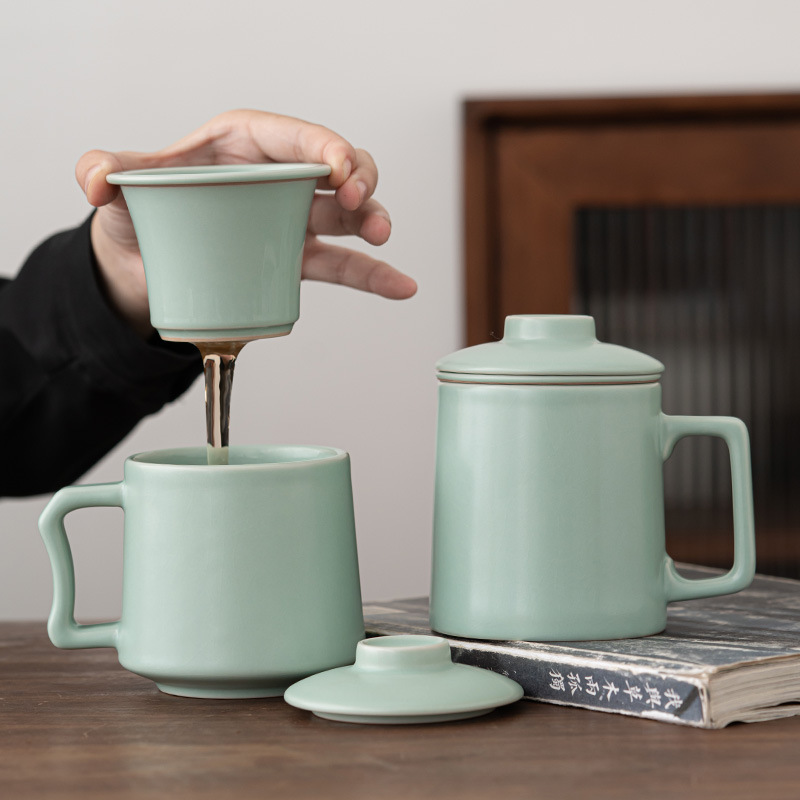マグカップ汝窯泡茶カップ陶磁器茶分離事務室でお茶を飲みます。