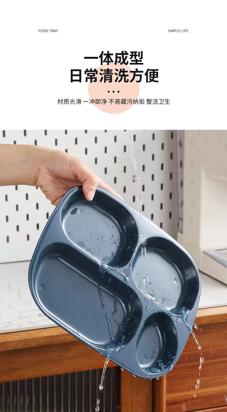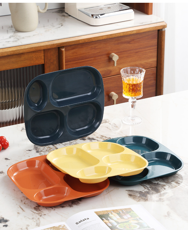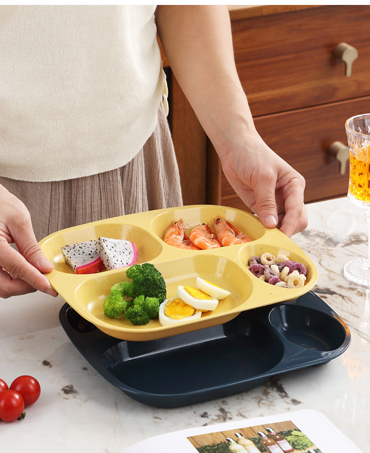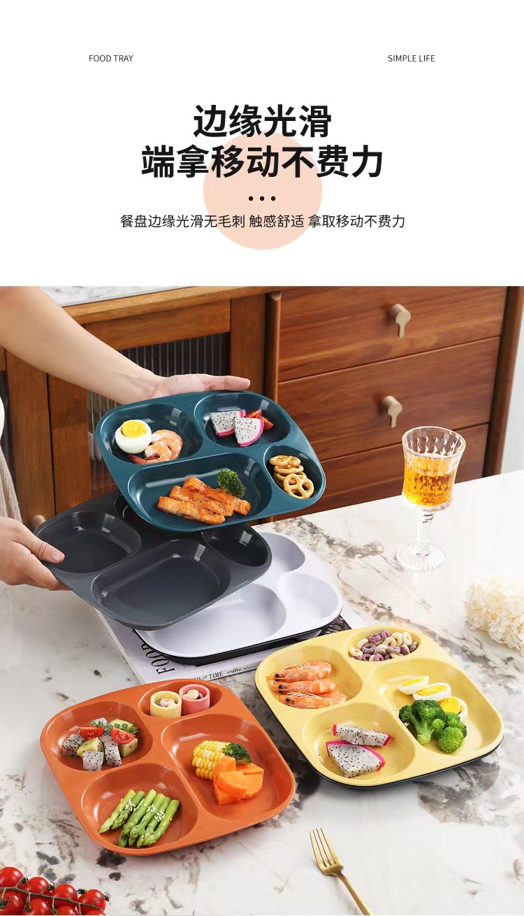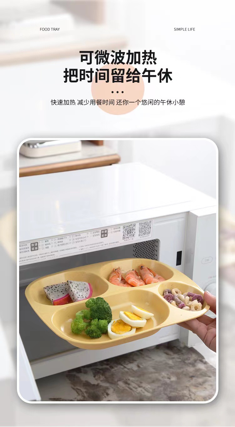 分格盤小麦わら食器四格盤学生ファーストフード皿学校食堂盛飯皿一体多格皿
