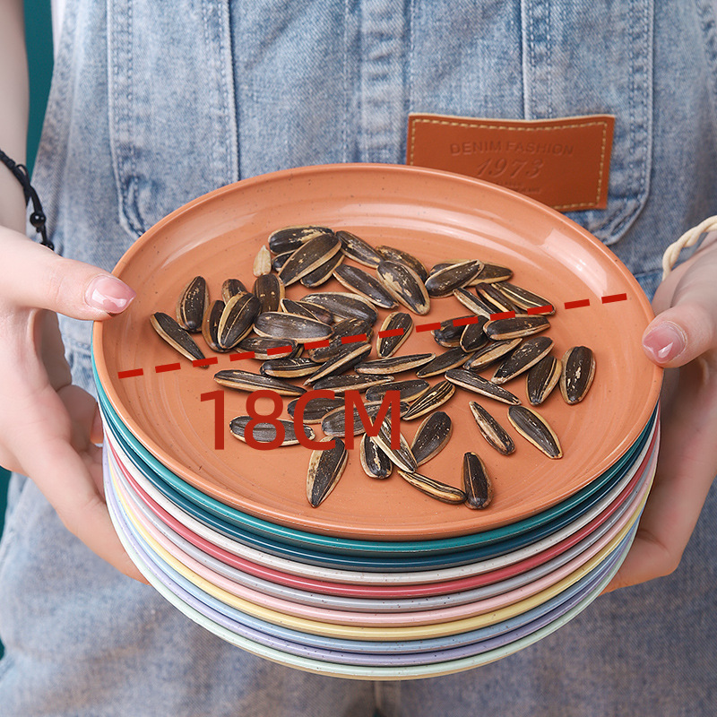 小麦秸秆盘子家用18cm装菜盘塑料PP防摔沙拉盘创意水果干果吐骨碟