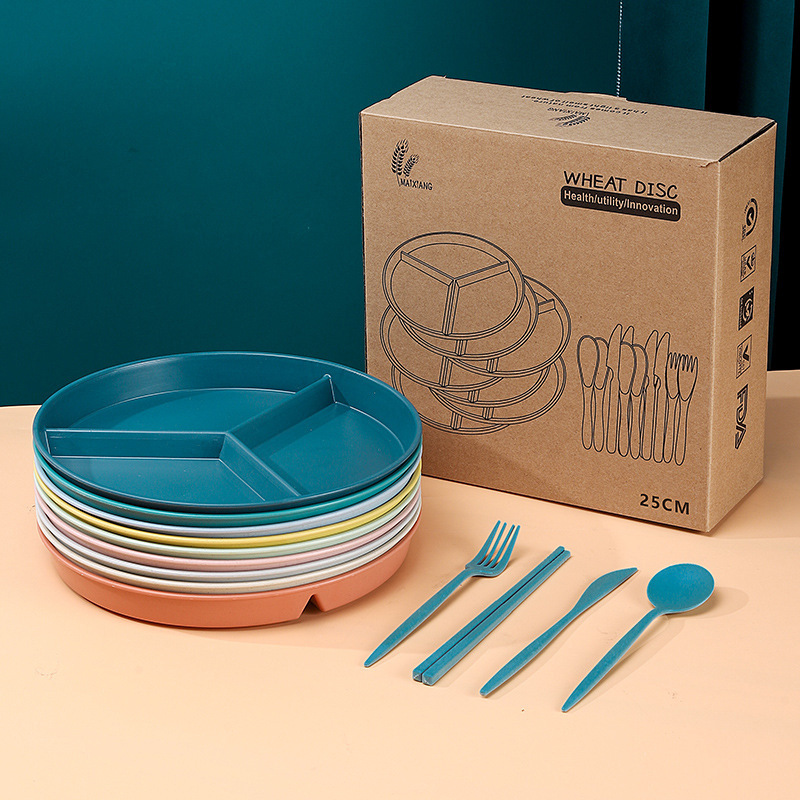 創意的な小麦わらの食事皿セット家庭用成人学生分格のファーストフード皿を厚くして、食堂の食事皿を厚くします。