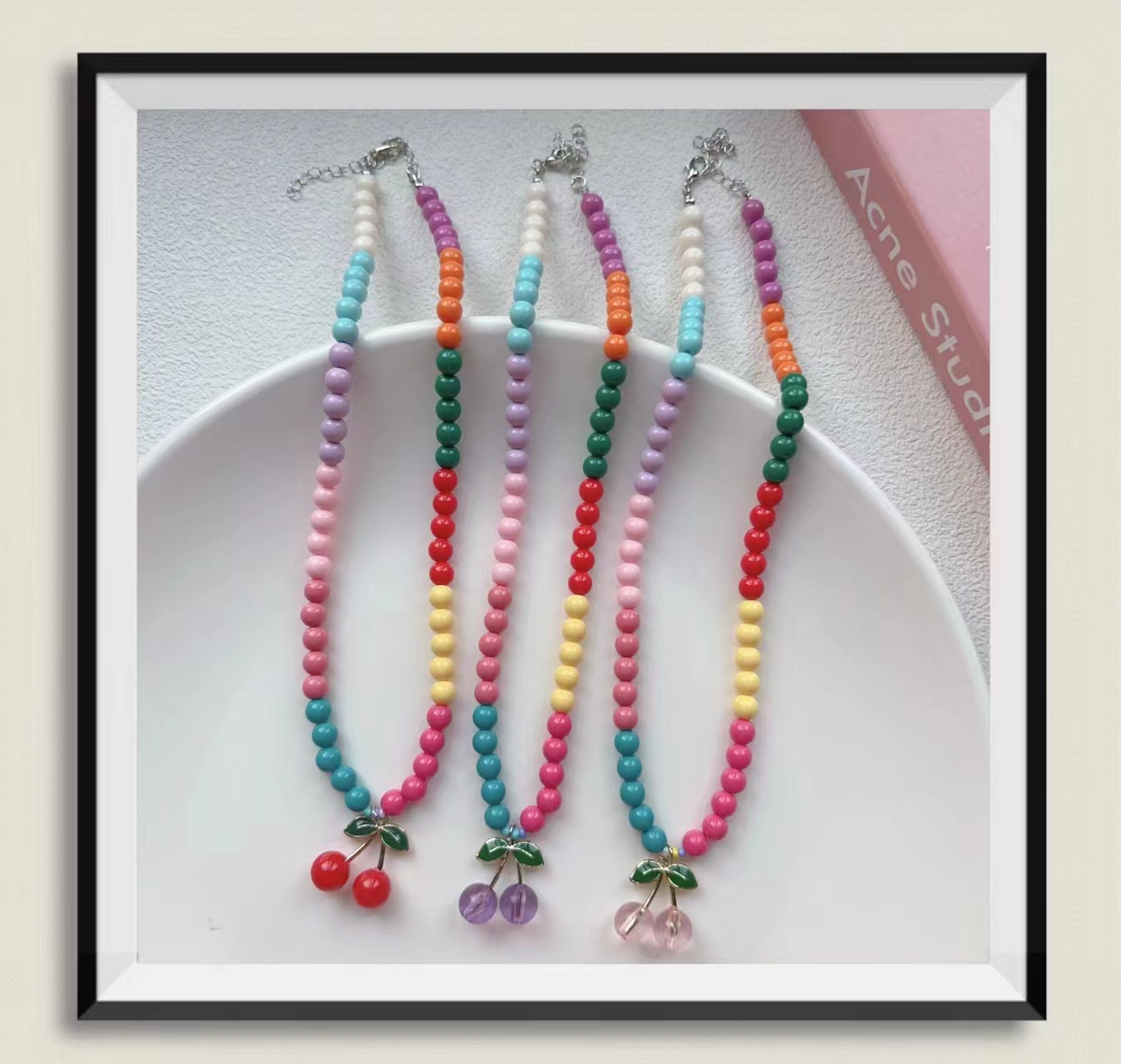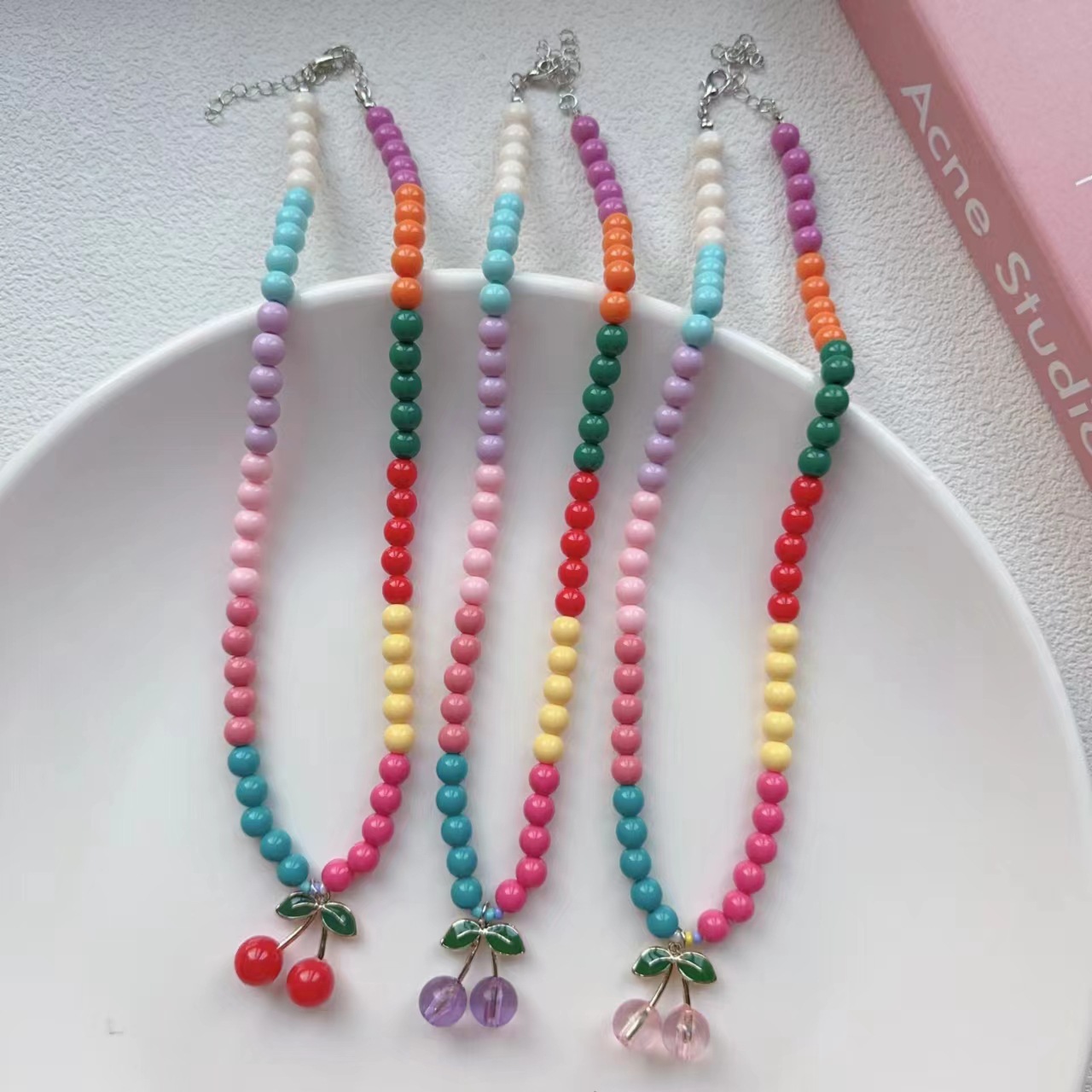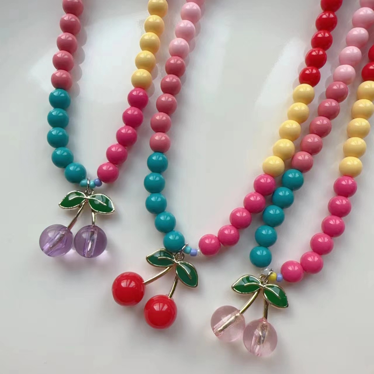 新商品の子供のネックレスのさくらんぼのペンダントの女の子の王女の数珠のクロミカラーの女の子のドーパミンは配合します。