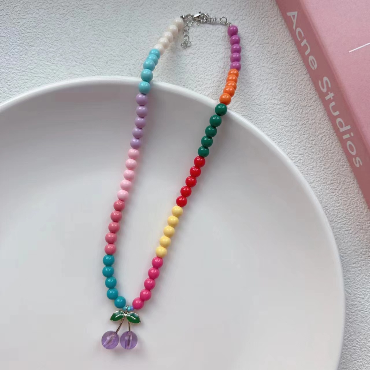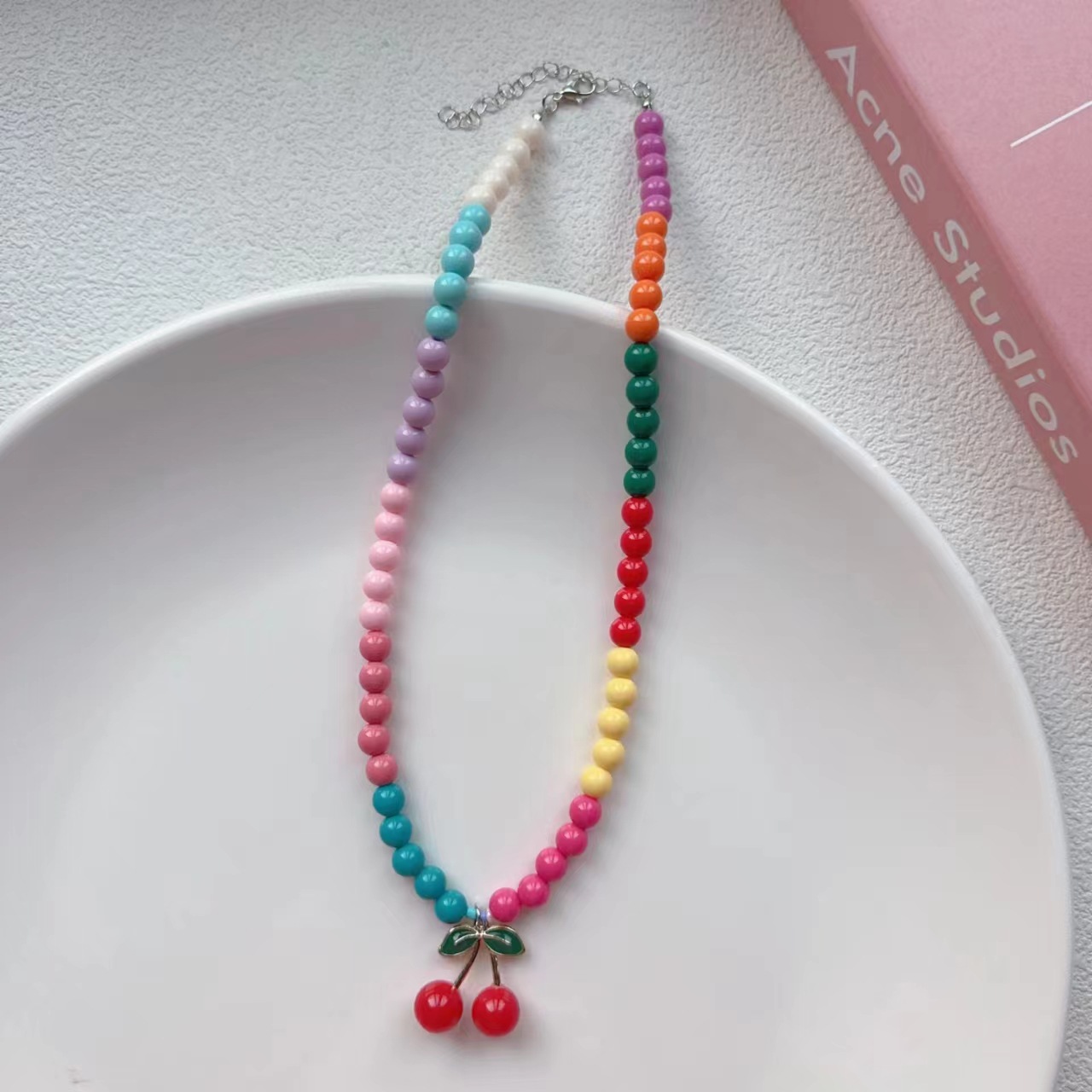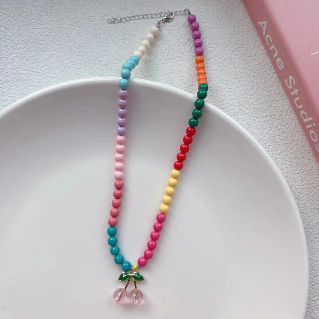 新商品の子供のネックレスのさくらんぼのペンダントの女の子の王女の数珠のクロミカラーの女の子のドーパミンは配合します。