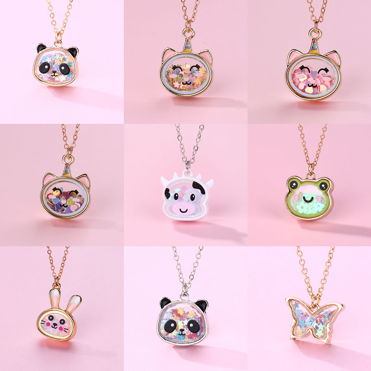 国境を越えた新しい子供用ユニコーンネックレス女性メーカー卸売には、女の子と学生のための可動スパンコールペンダントが含まれています