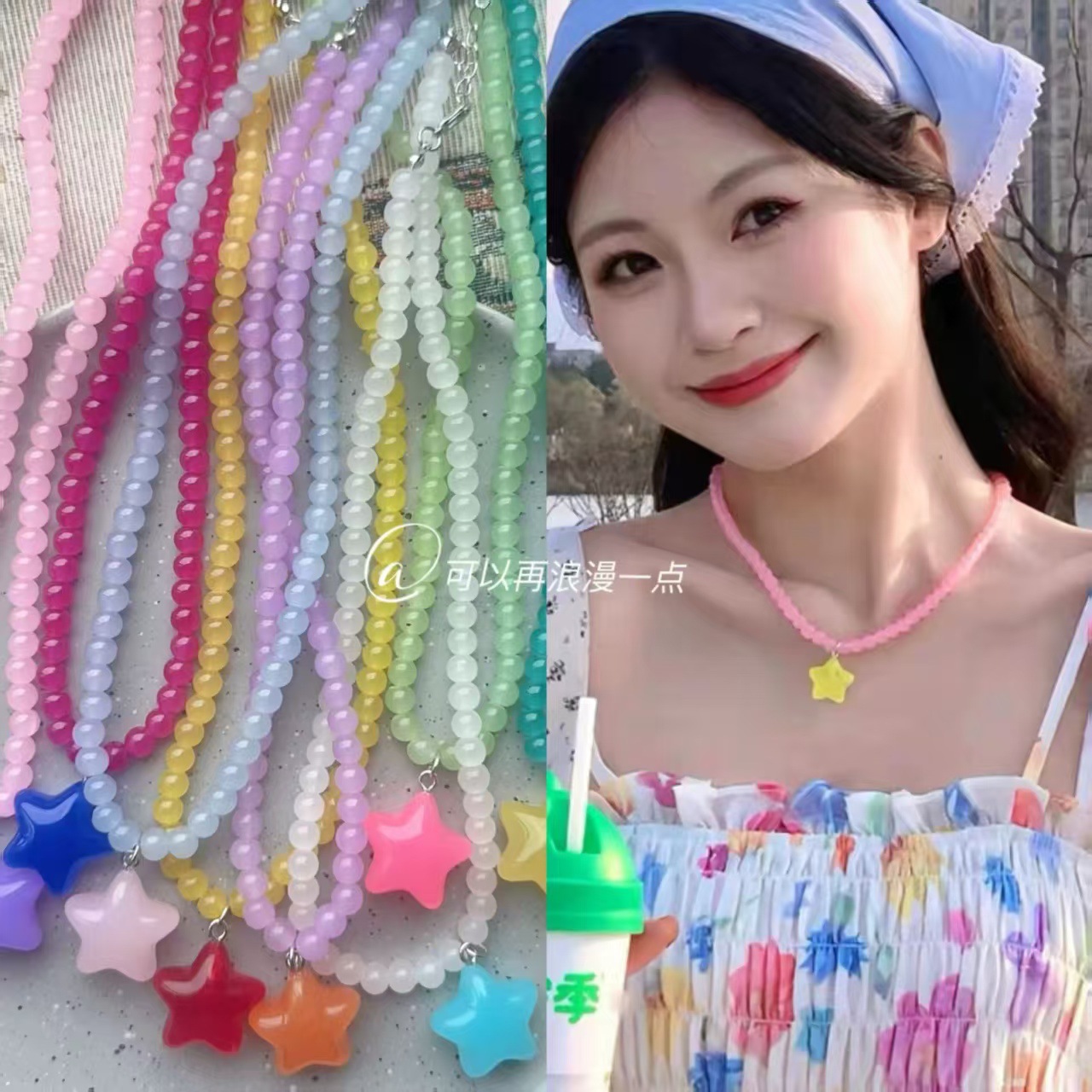 ロマンチックなビーチスウィートガール韓国風夏ドーパミンカラー五芒星キャンディネックレスシンプルで多用途なネックレス