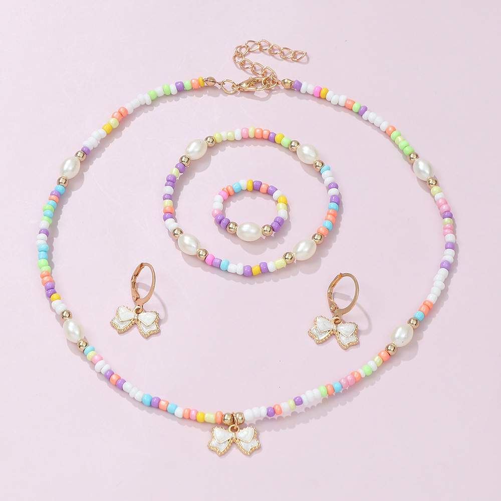 国境を越えたボヘミアン風カラービーズ滴油蝶ネクタイ子供ネックレスブレスレット指輪イヤリングセット