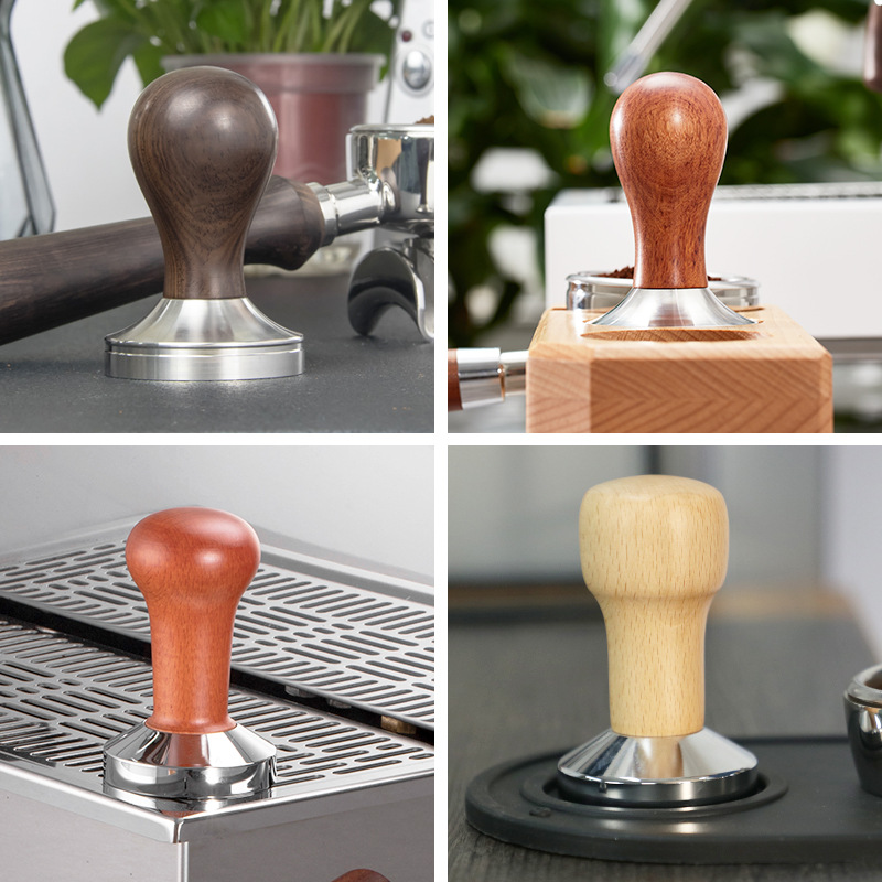 コーヒープレス粉器51/53/58mm粉ハンマー実木ハンドル家庭用コーヒーマシン充填機ステンレス粉ハンマー