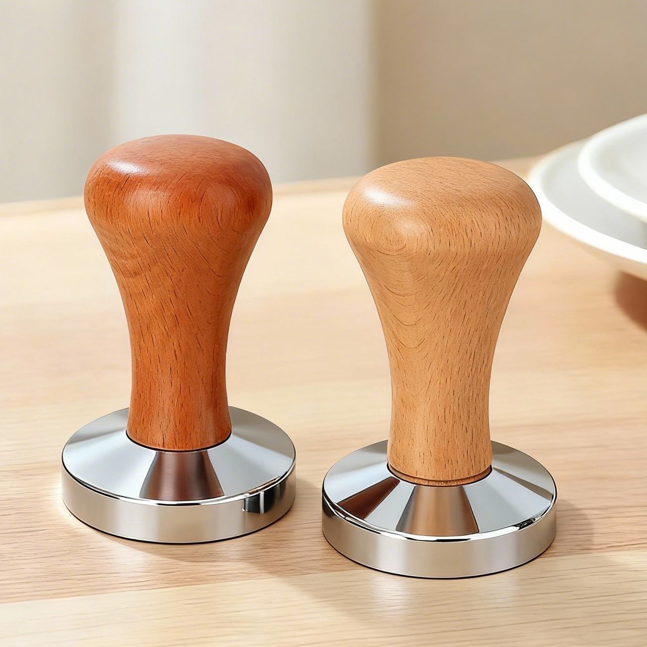 コーヒープレス粉器粉ハンマーケヤキハンドルステンレス圧粉ハンマー51/53/58mmエスプレッソコーヒーマシン器具