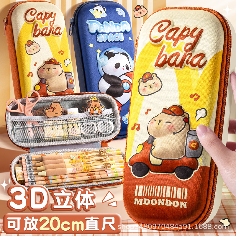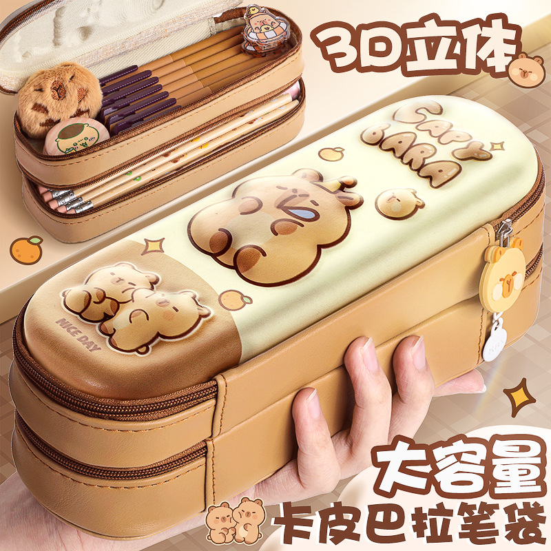 咔巴熊笔袋3D男孩款文具盒女童笔盒新款学生流行铅笔盒大容量双层