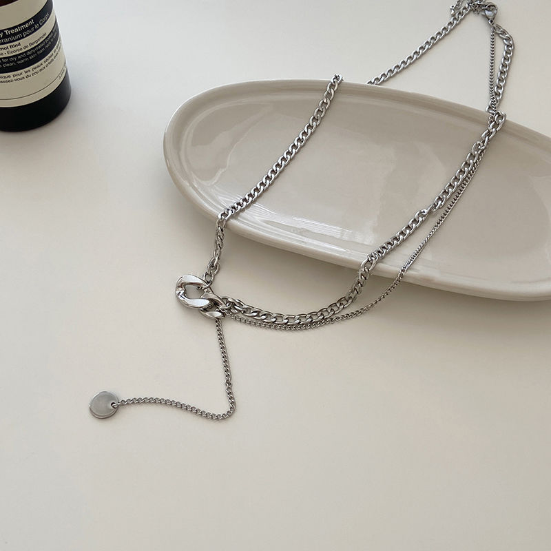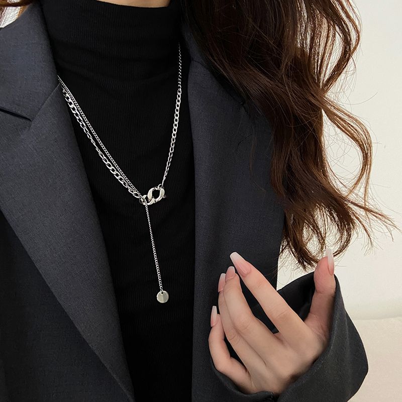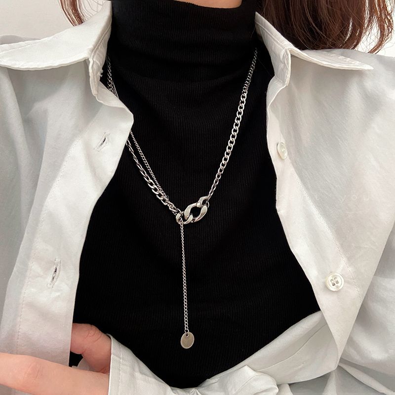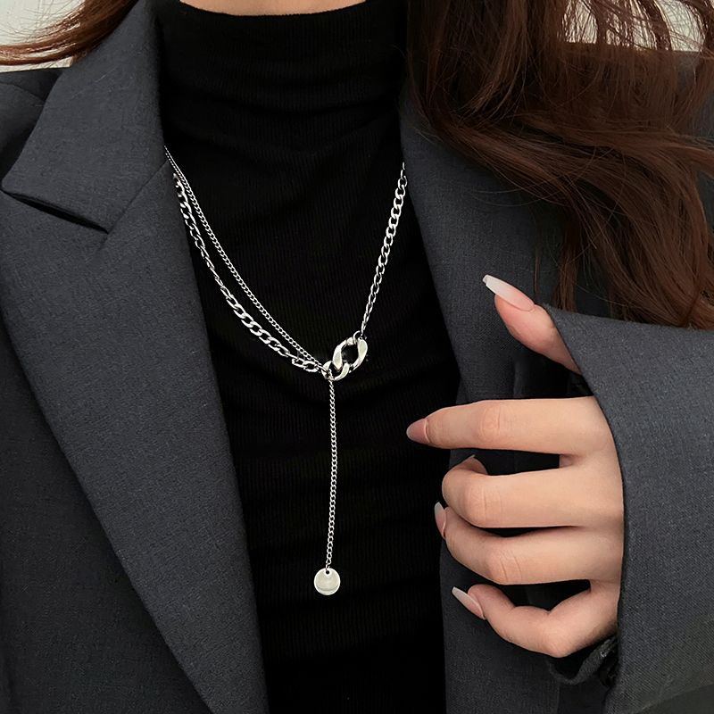 秋冬の銀色の丸いブランドのペンダントのネックレスの女性insの冷たい風の長いタイプの百合のセーターのチェーンのヒップホップのファッションのクールなアクセサリー