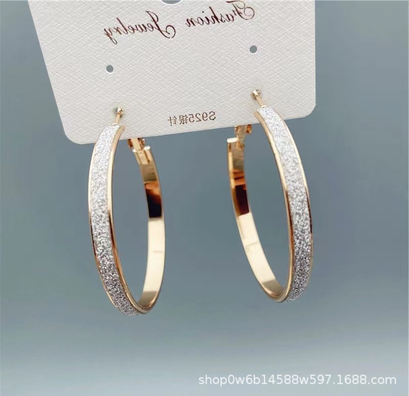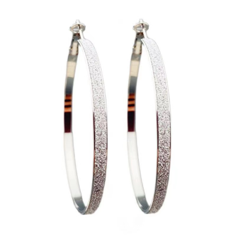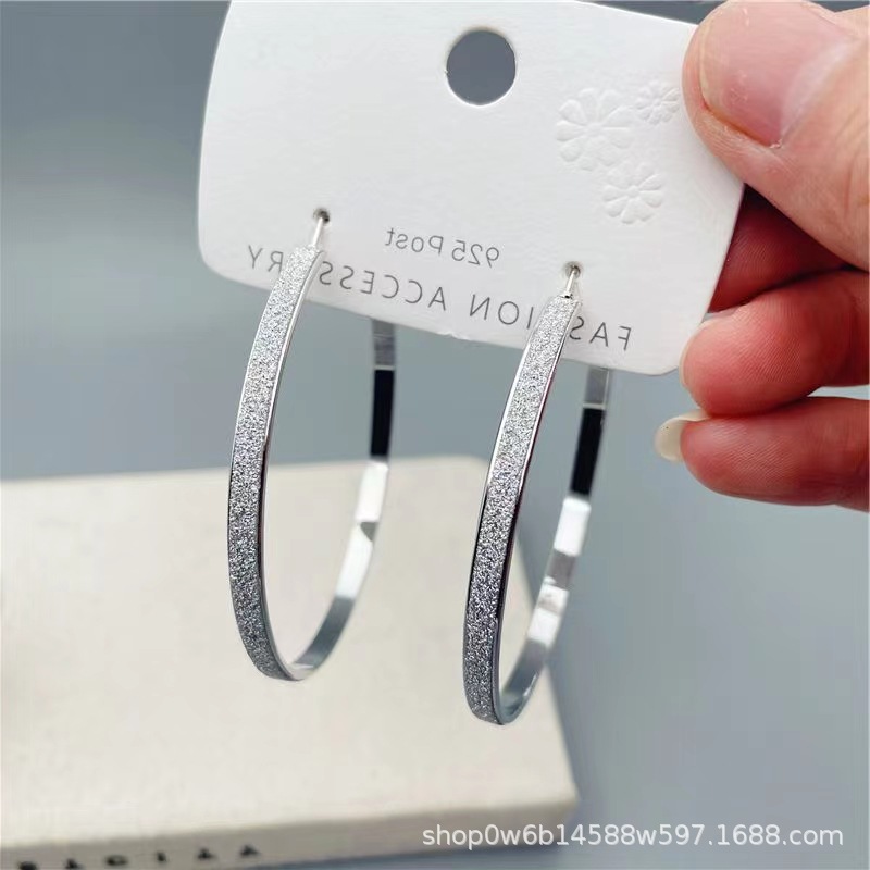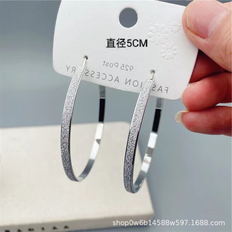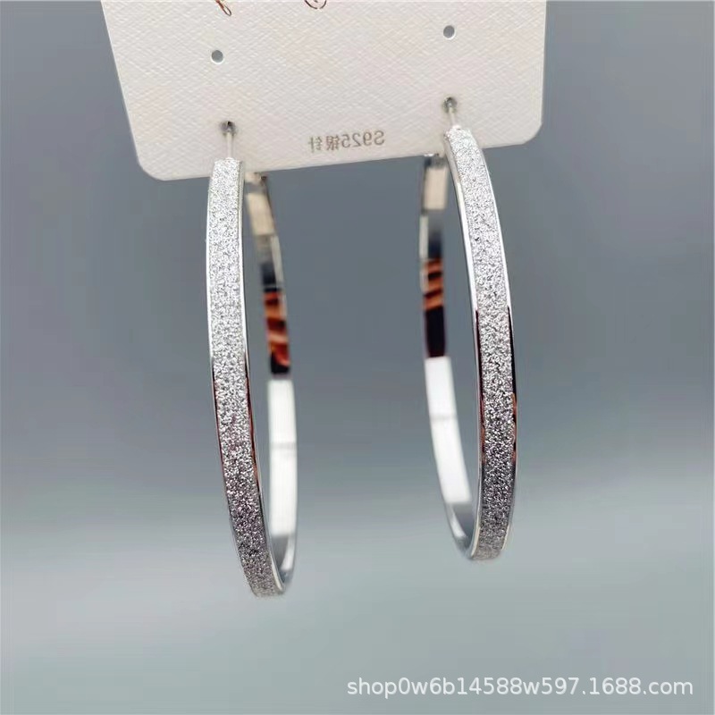 欧美超闪磨砂银金属大圆圈圈耳环耳圈女新款2023年气质高级感耳坠