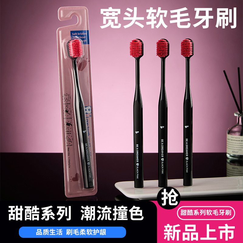 シングル黒粉ソフト毛成人歯ブラシ甘いクールなヘッドシリーズカップル歯ブラシ口腔洗浄メーカー卸売り