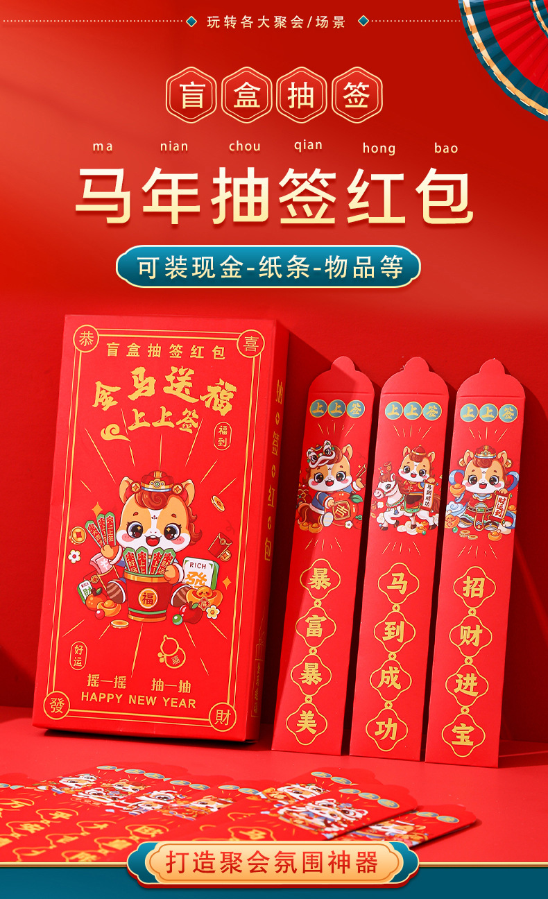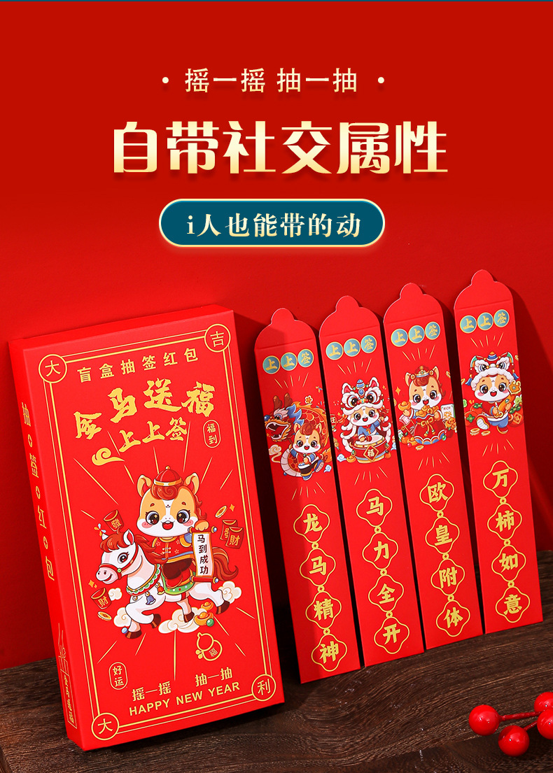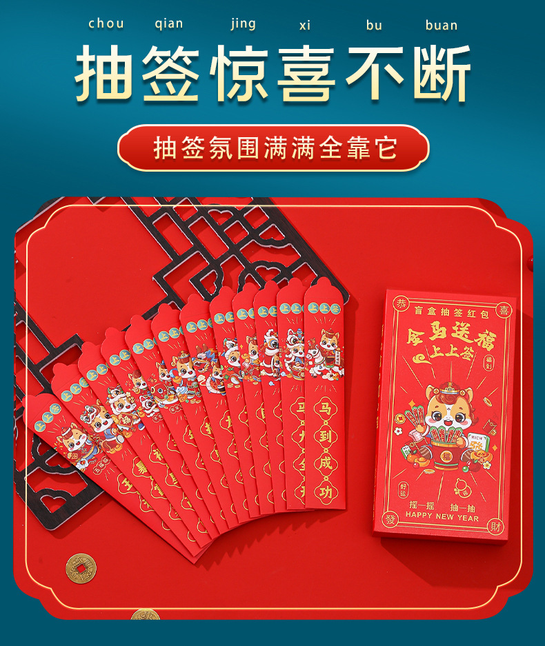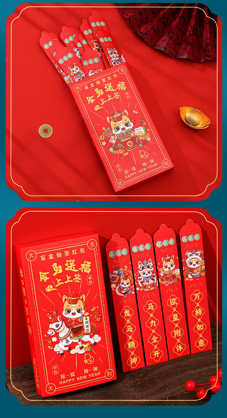 2026马年新款抽签红包 过年创意盲盒红包国潮幸运12签结婚利是封