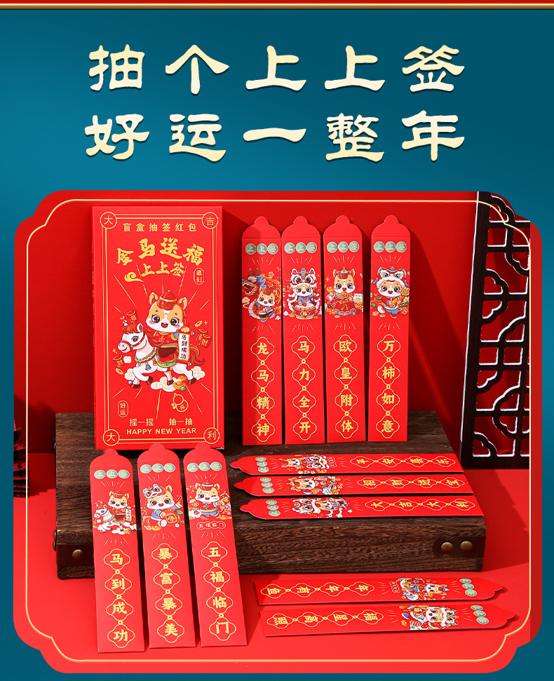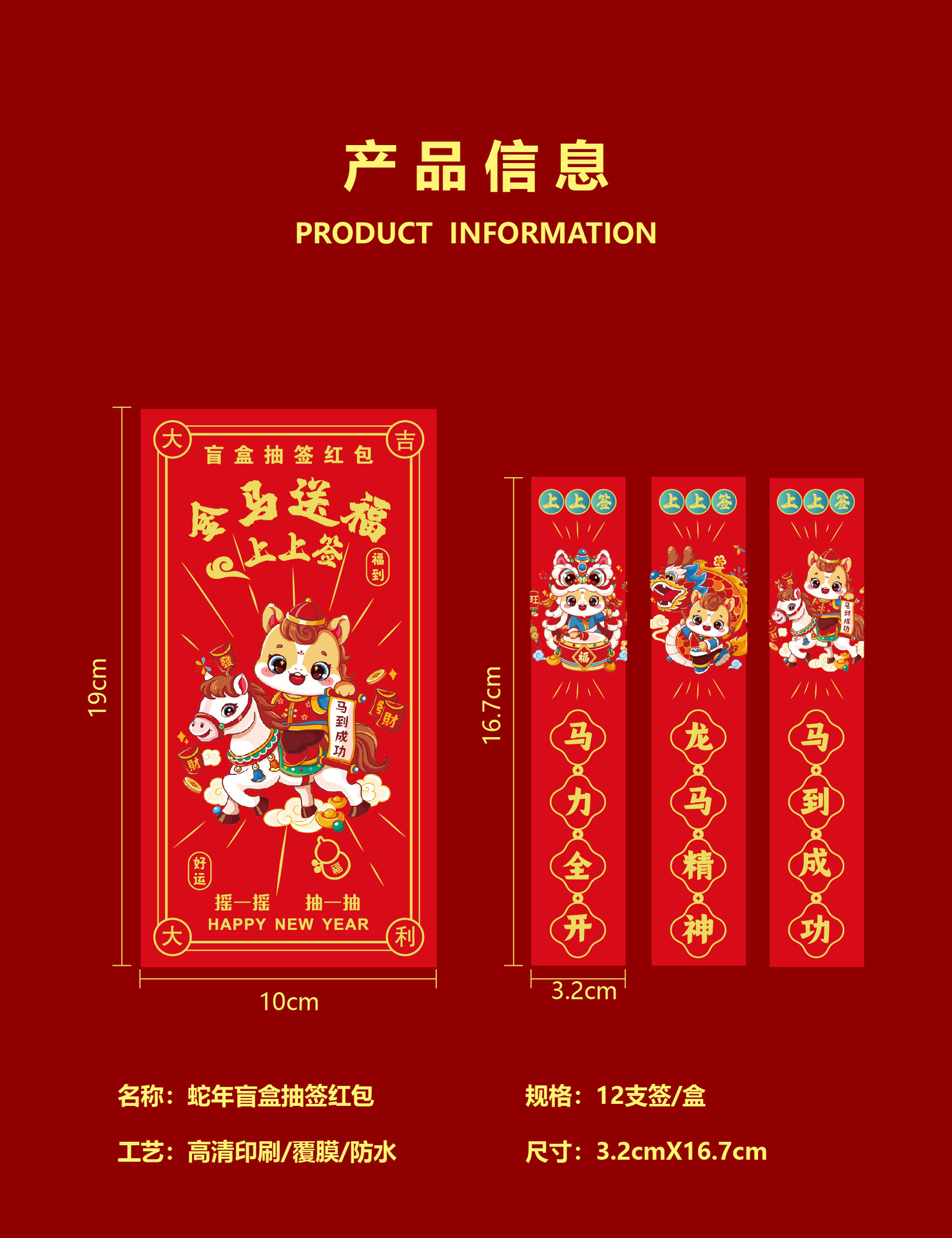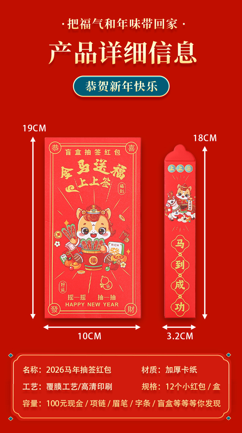 2026马年新款抽签红包 过年创意盲盒红包国潮幸运12签结婚利是封