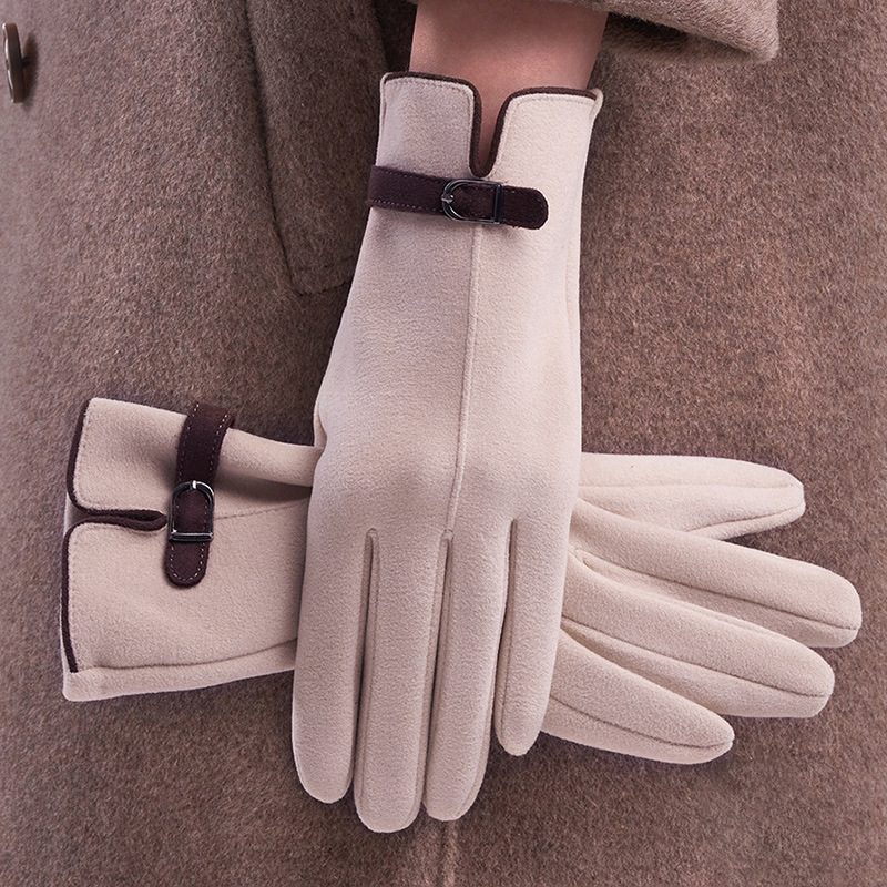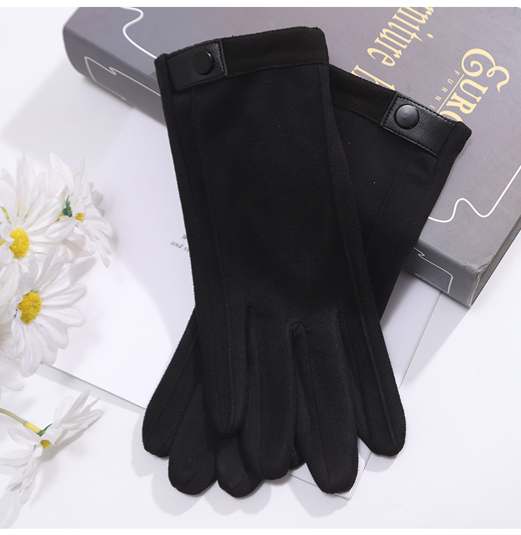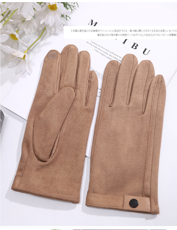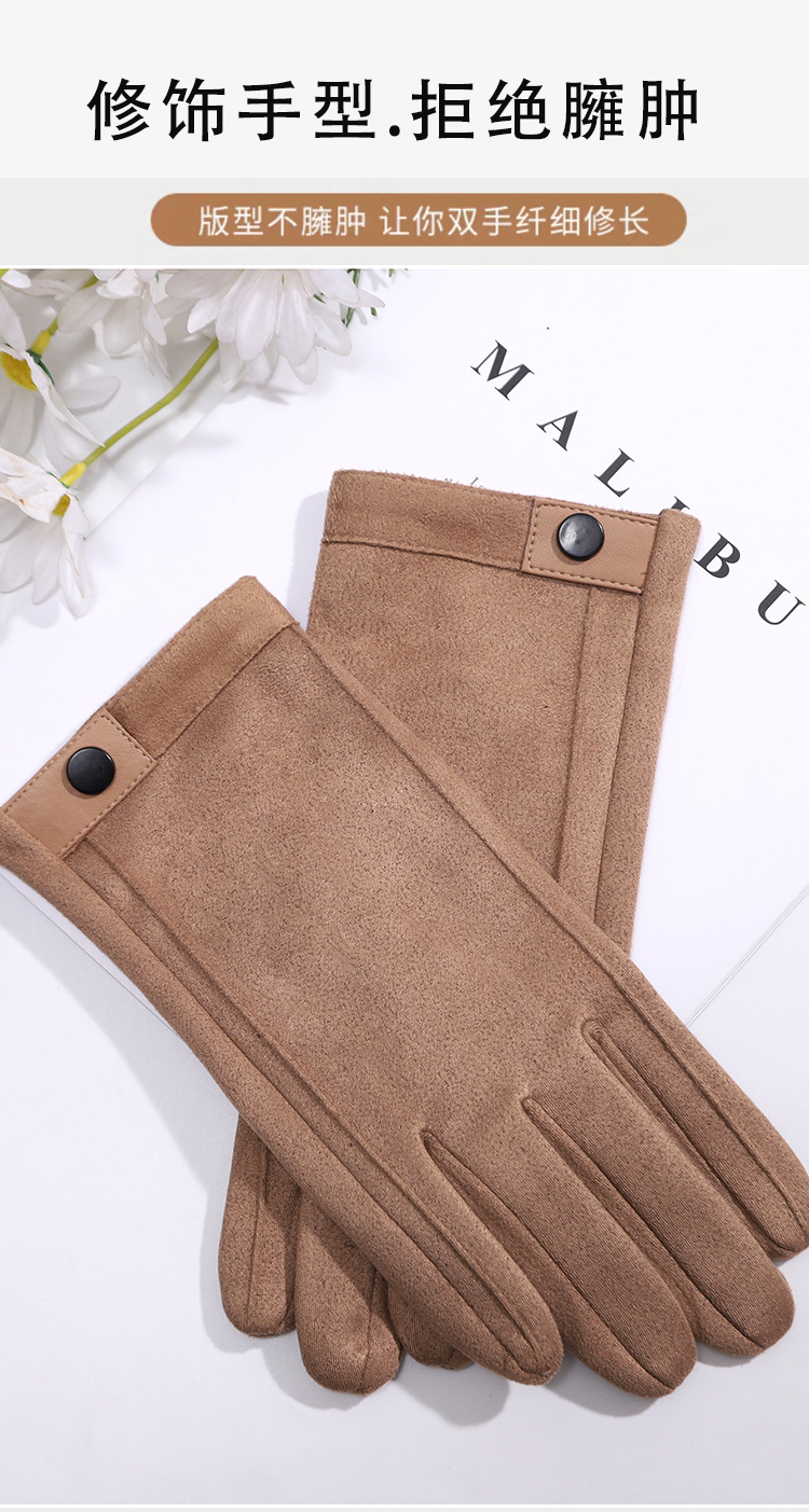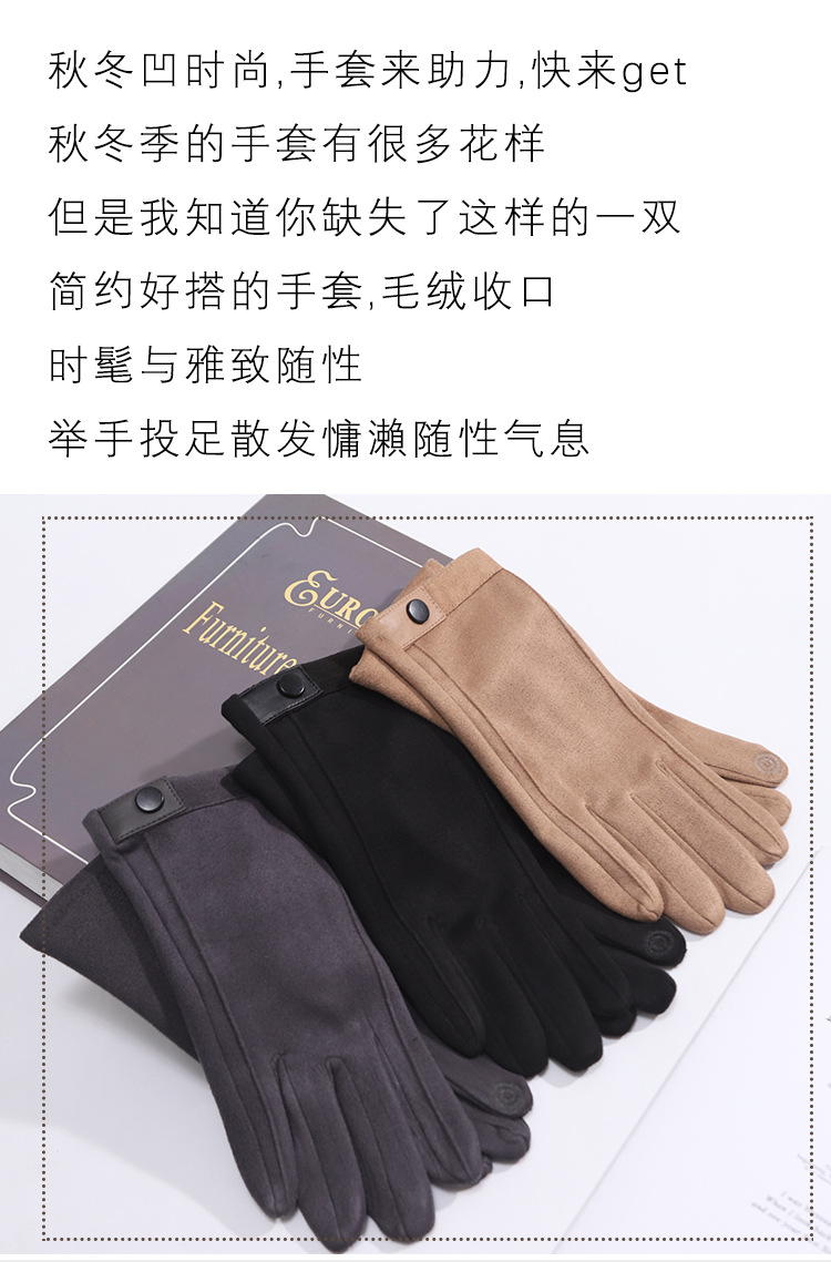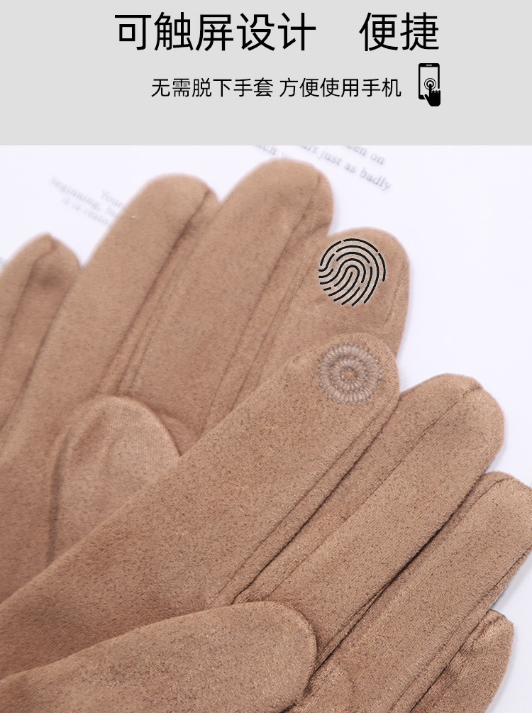 经典麂皮绒手套女冬季加绒加厚手套复古保暖防风防水触屏手套外贸