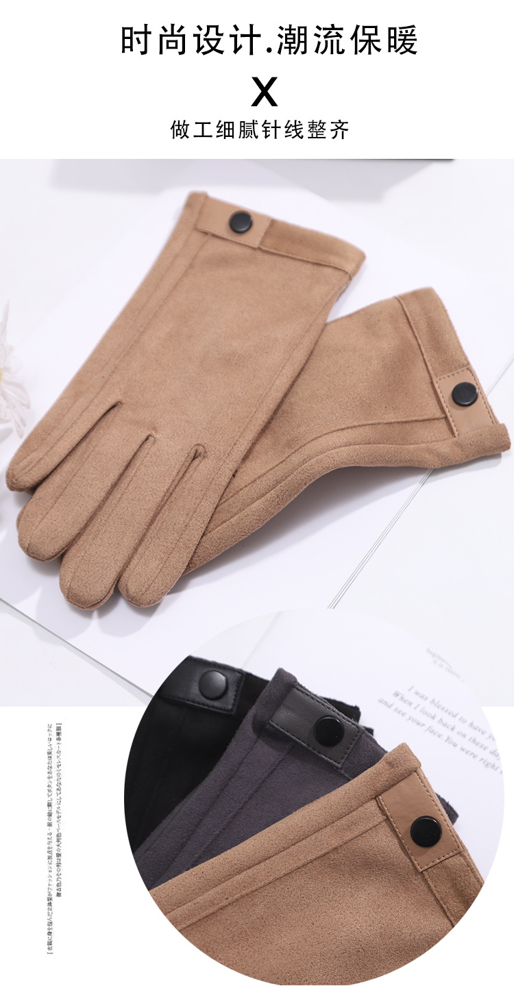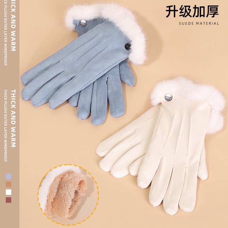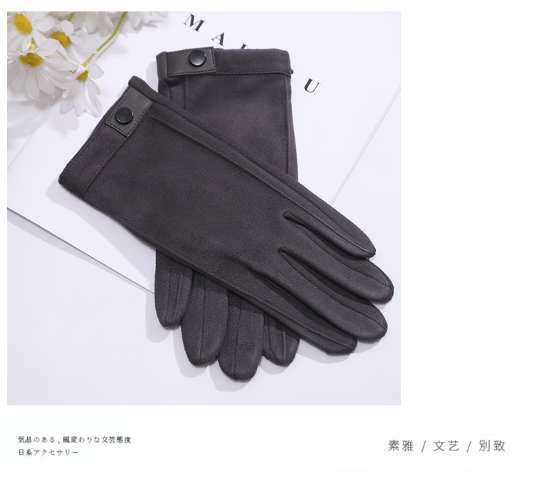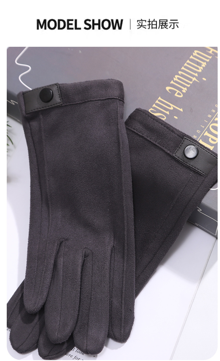 冬季户外骑行分指手套女款触屏厚保暖冬季麂皮绒卡扣手套女士代发