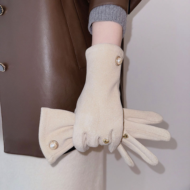 优雅名媛风分指可触屏手套女珍珠点缀长款百搭时尚户外保暖拨冗冬