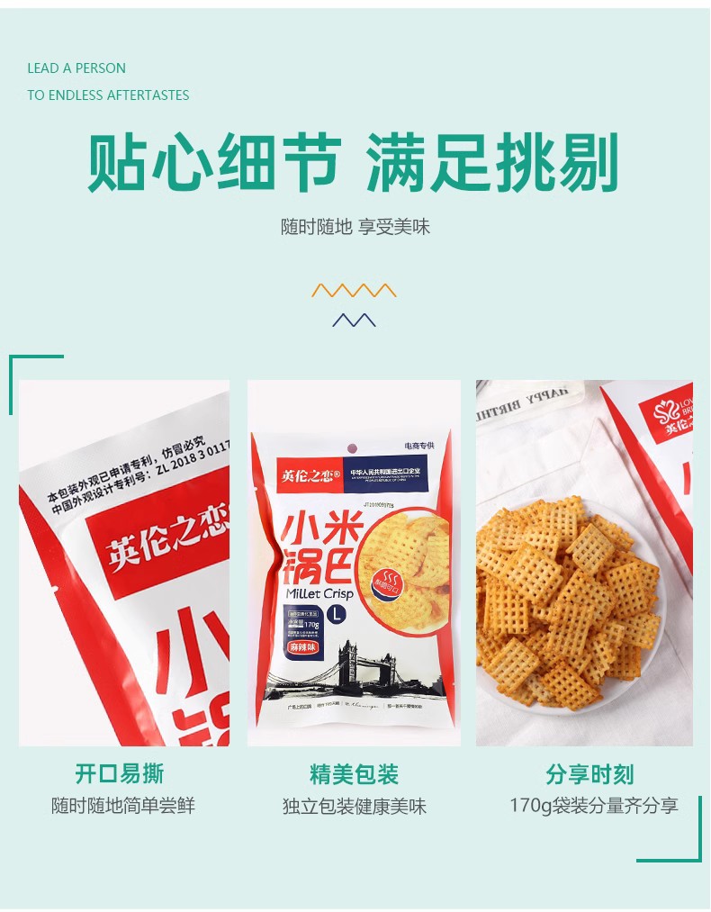 メーカー直発英倫の恋粟鍋巴170g大袋包装卸売り代理工場直販日新鮮